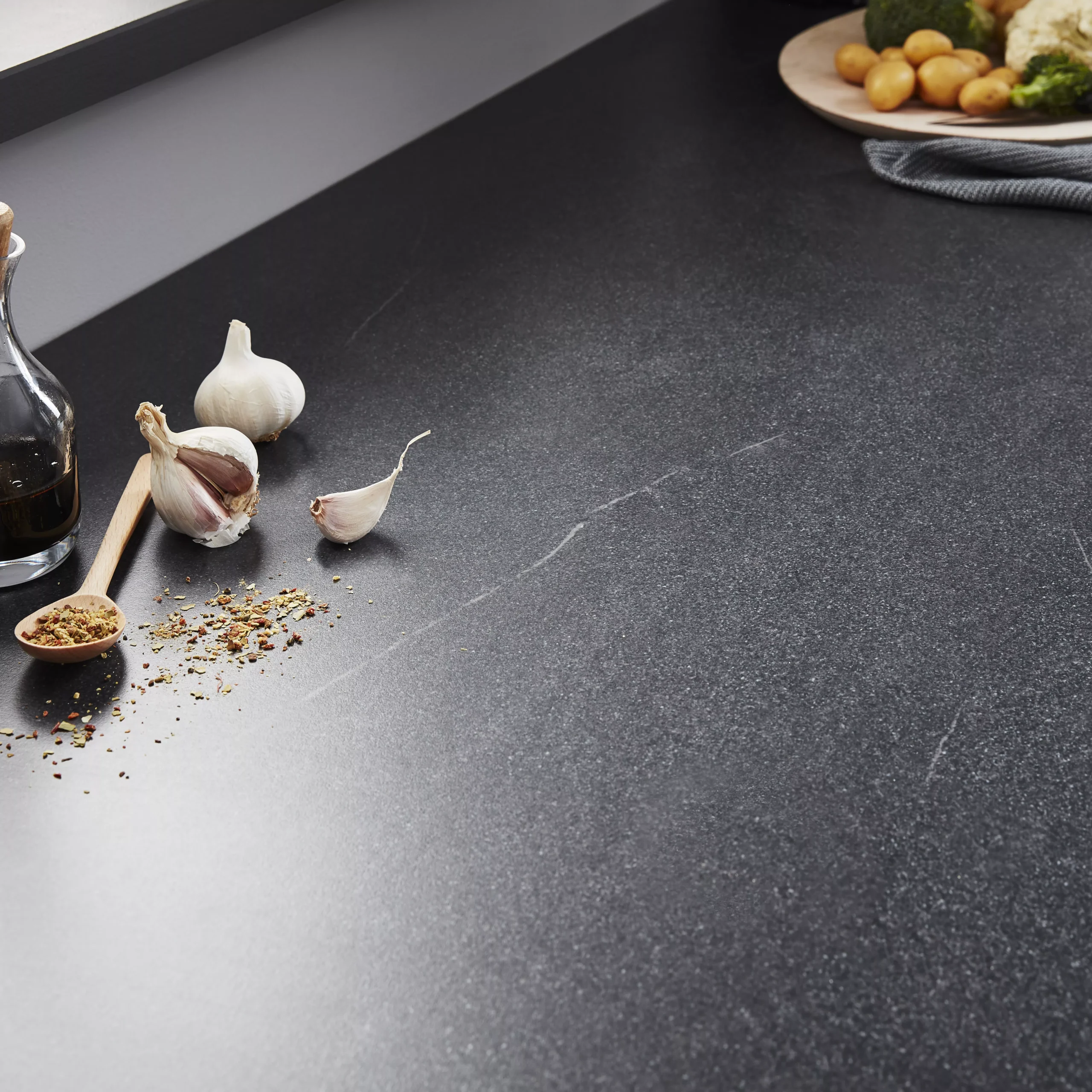 This dark grey stone effect worktop is designed to be functional and easy to maintain. There are a wide range of options to suit your style and home, they also compliment the GoodHome doors and accessories that are available, making it easier than ever to create your own individual space.