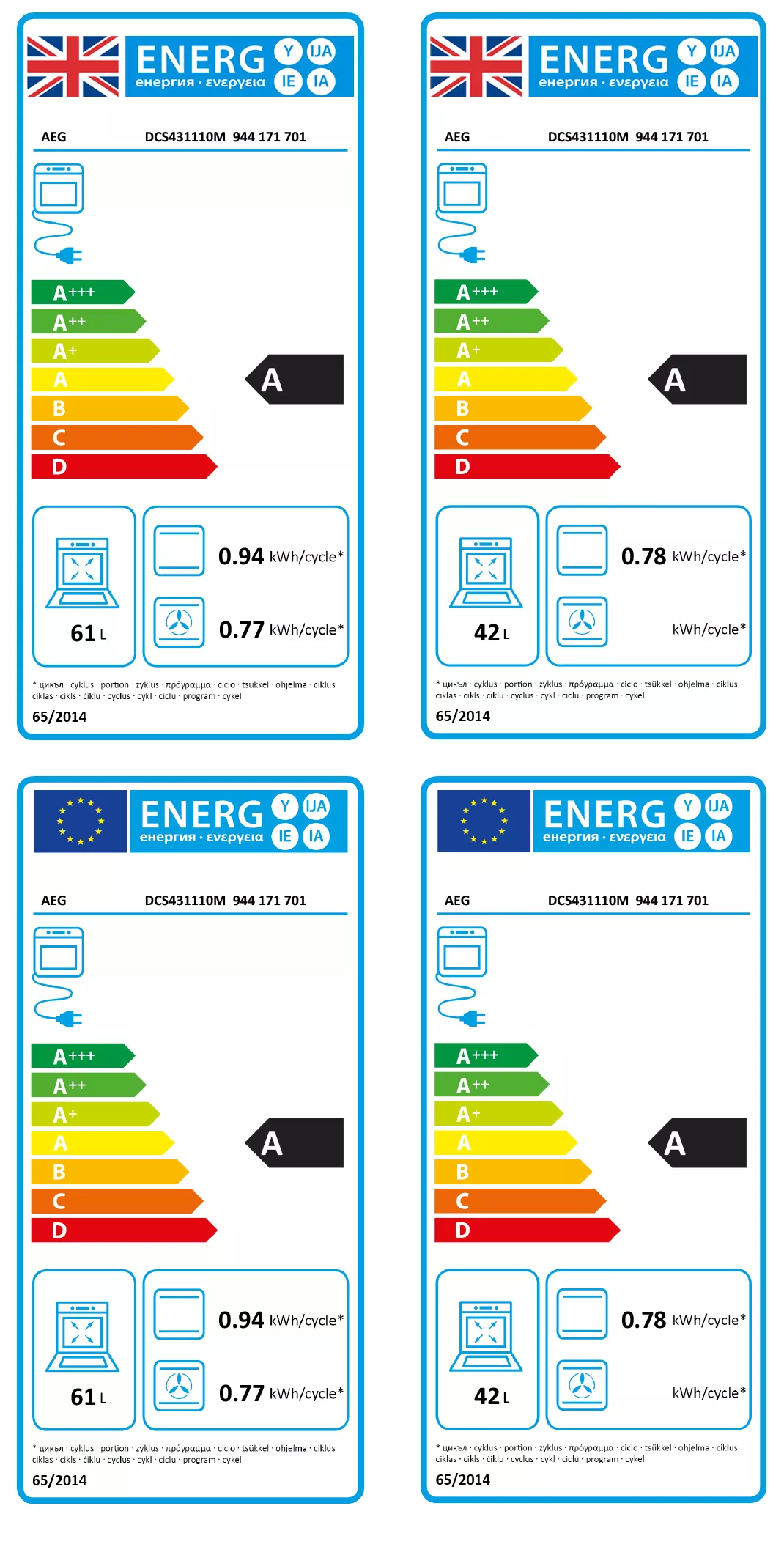 | Main oven capacity | 61L |