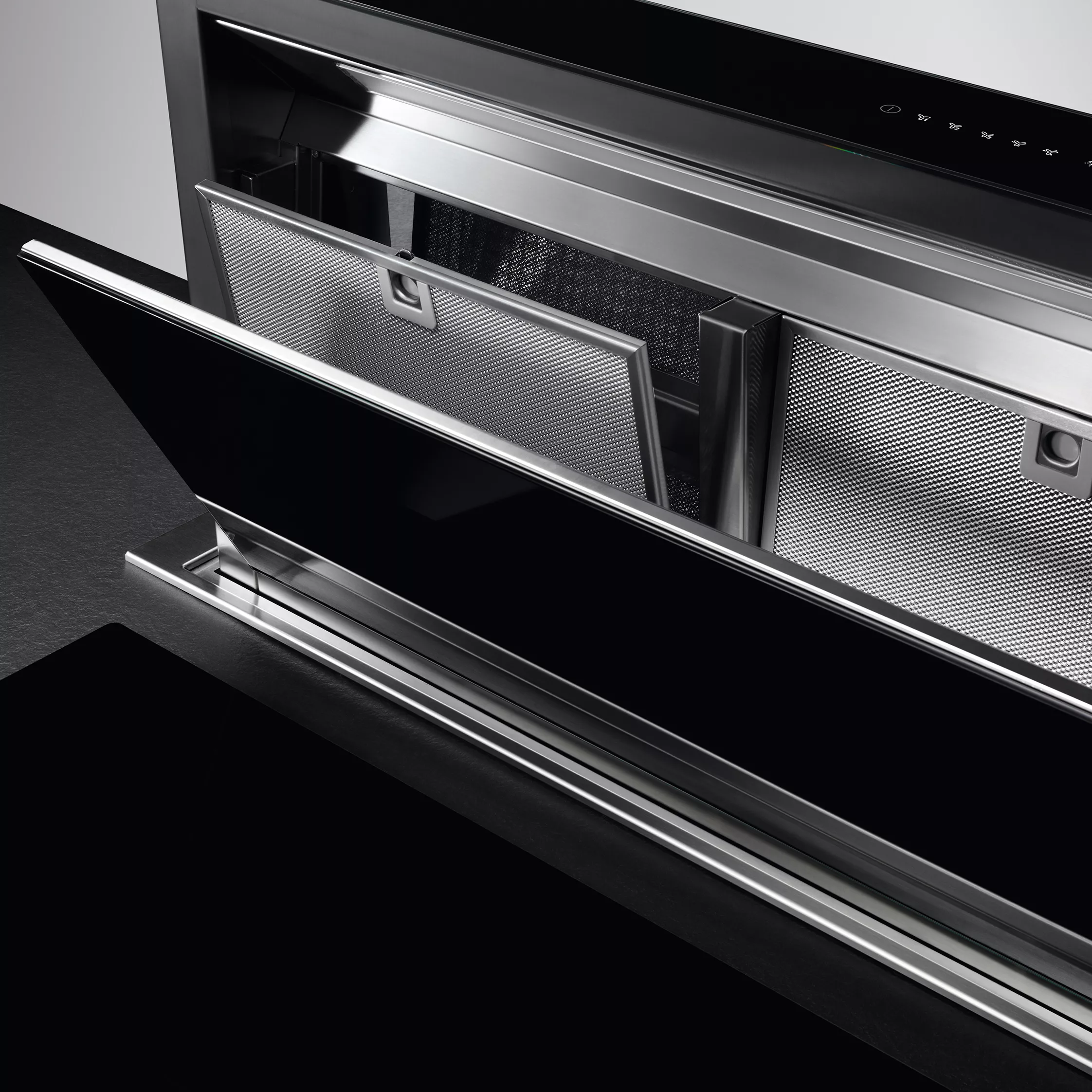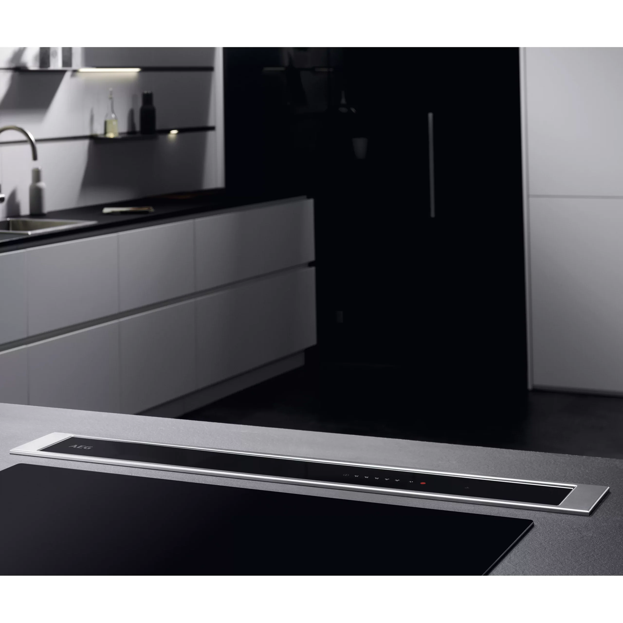 This AEG DDE5980G_BK downdraft cooker hood is stylish, luxurious and perfect if your hob is located on an island as it can be hidden in the worktop when not in use simply by pressing a button.