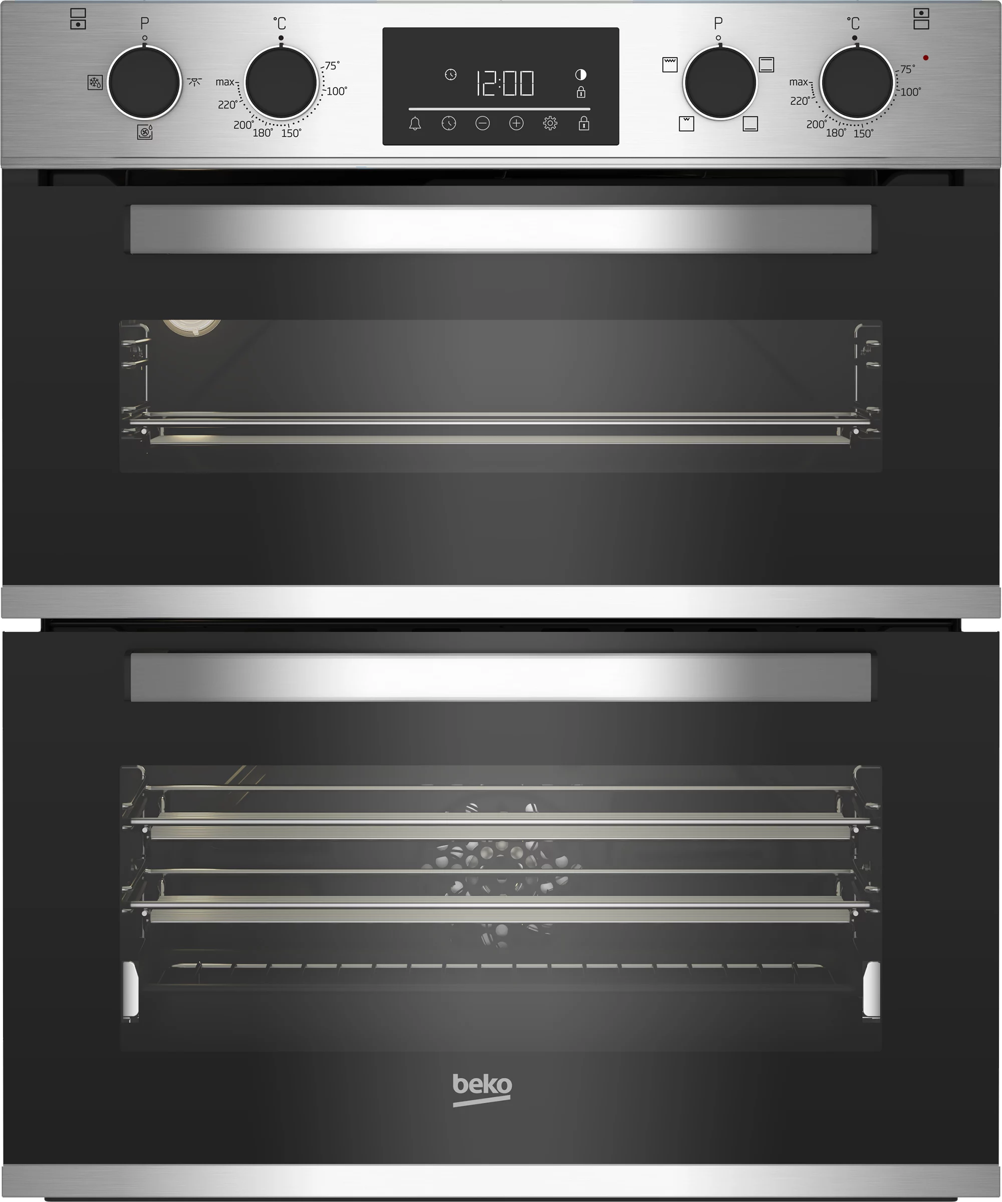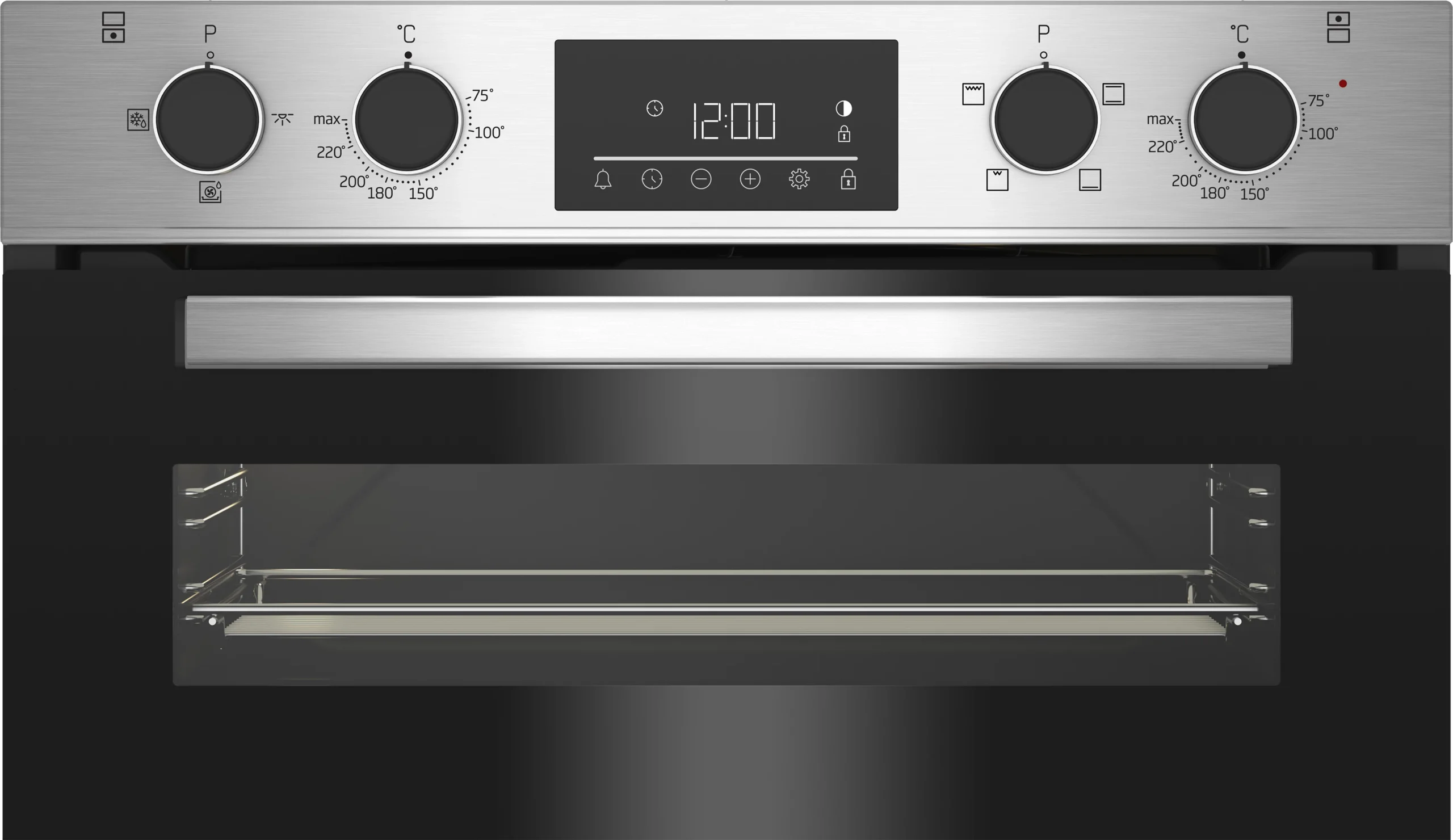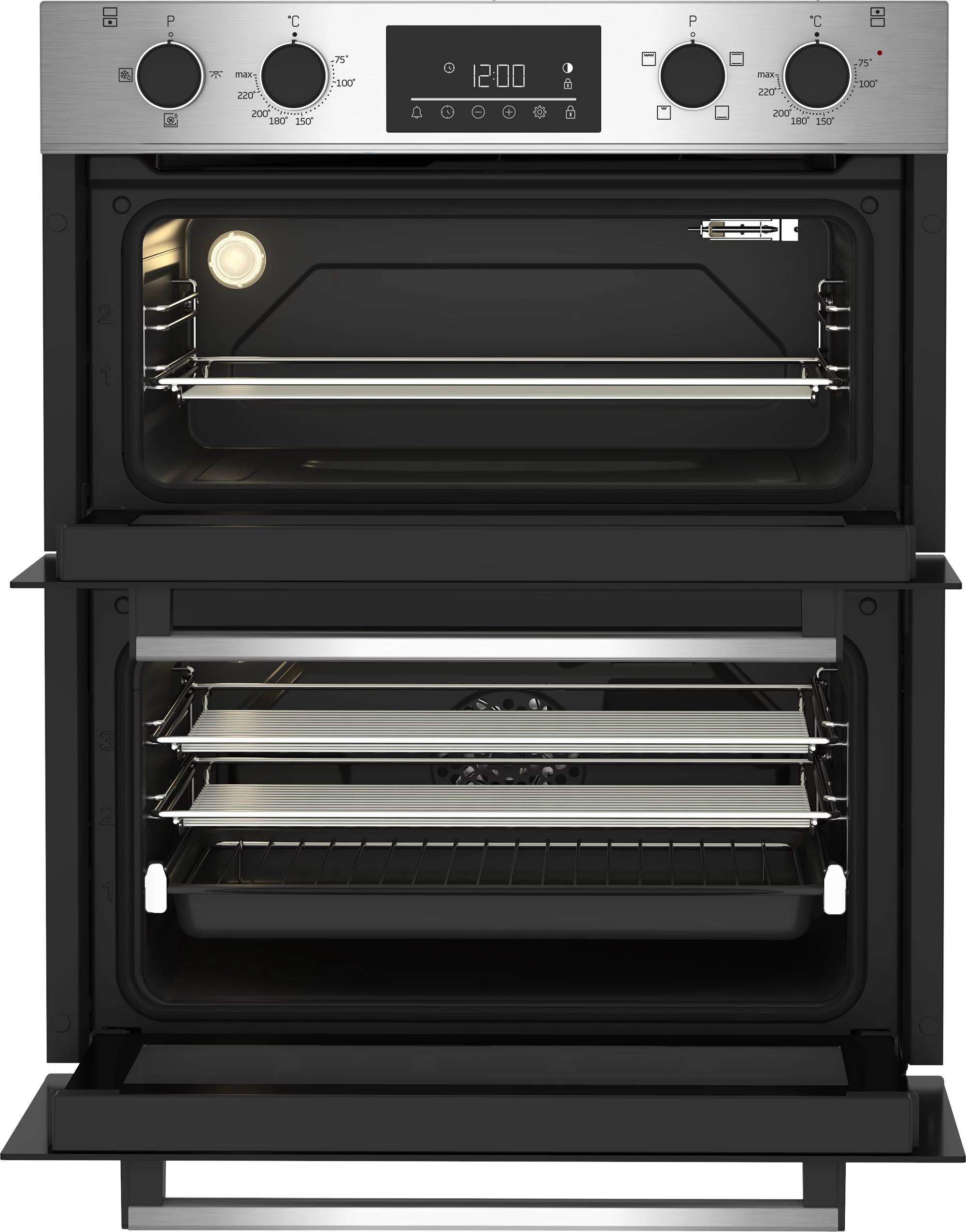 This built-under double oven has a huge combined 86 litre capacity with an easy-clean interior. It also features true fan cooking for quick and even results.