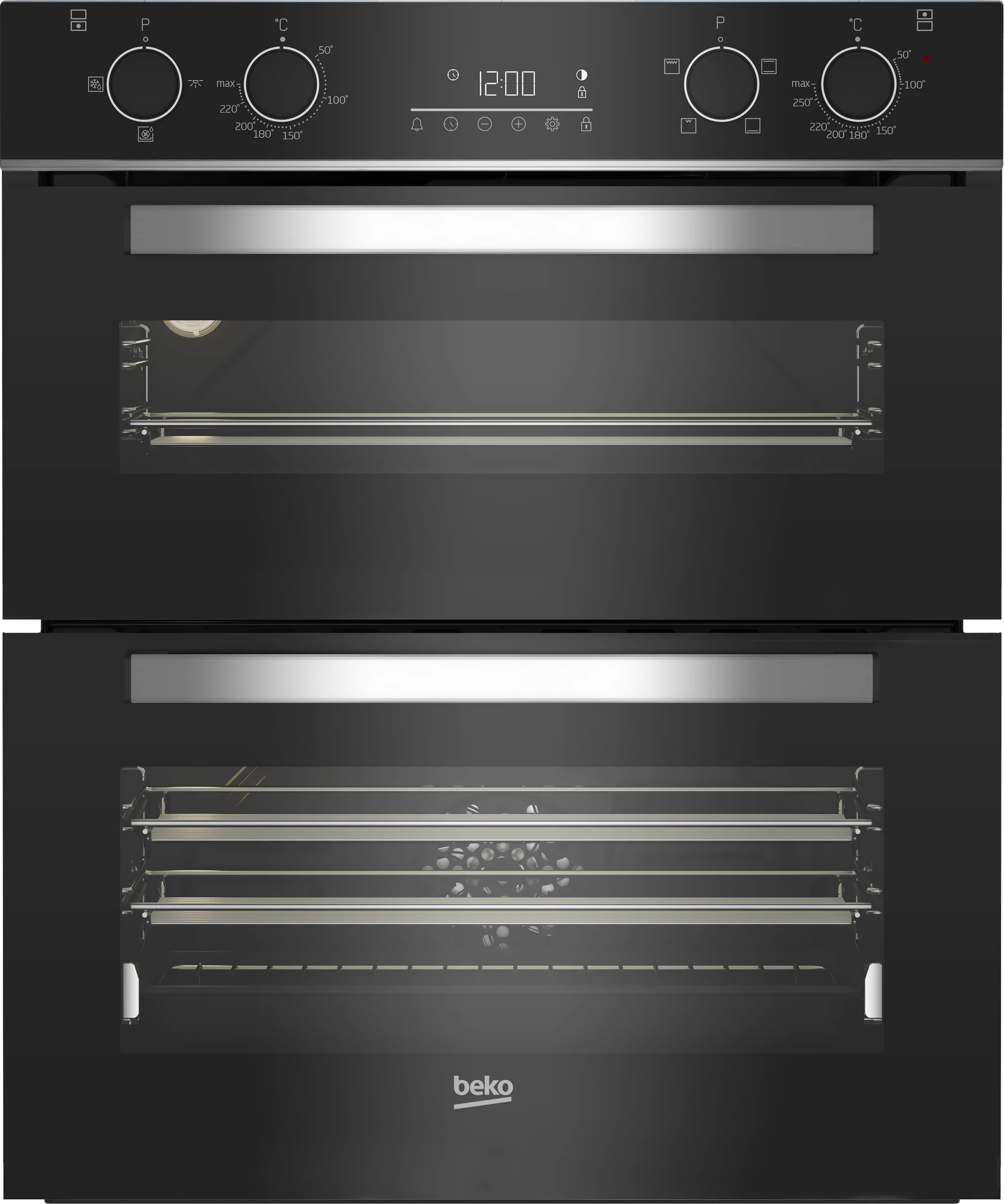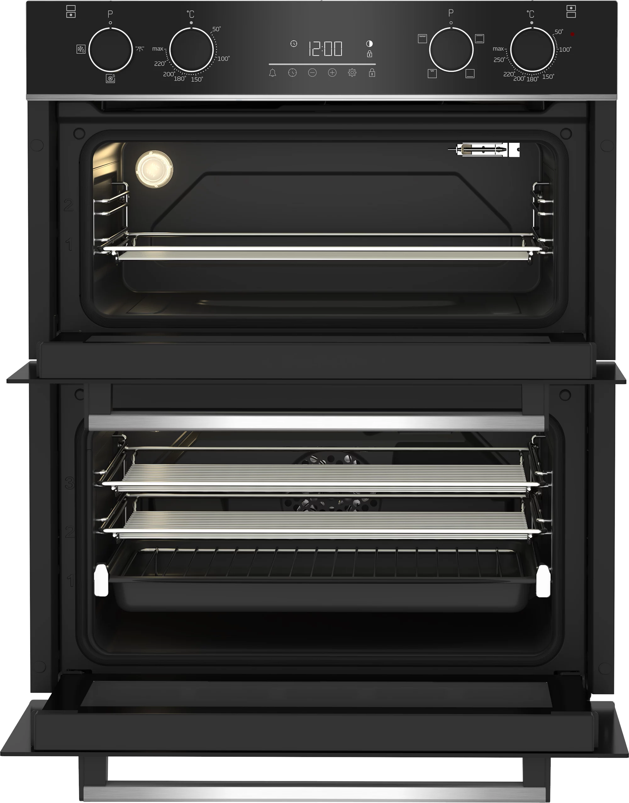 This built-under double oven has a huge combined 86 litre capacity with an easy-clean interior. It also features true fan cooking for quick and even results.