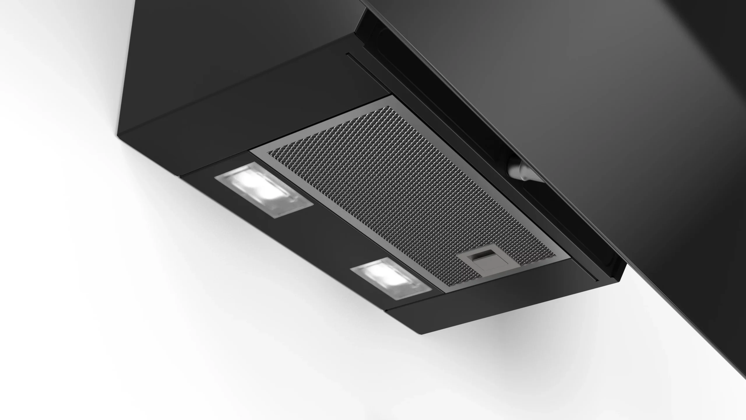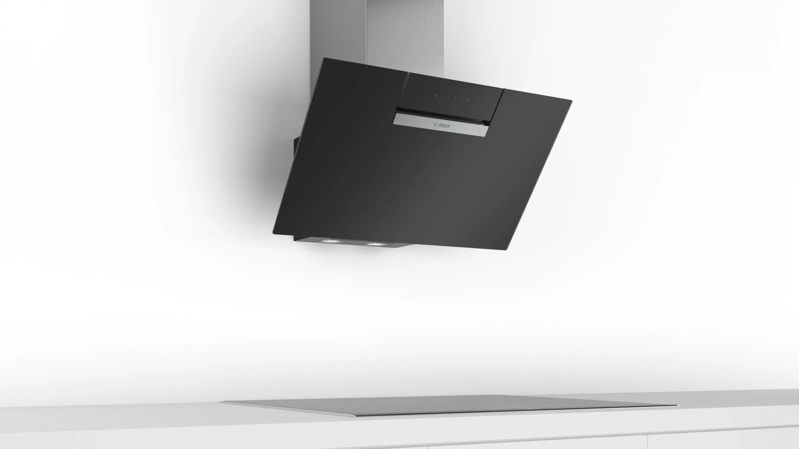 Bosch Serie 2 Glass Angled Cooker hood removes strong kitchen odours quickly at the touch of a button.