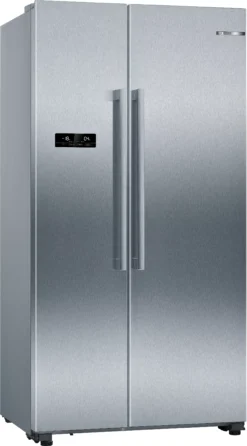 Bosch Serie 4 American side by side Fridge freezer with NoFrost and FreshSense technology and a modern door display.