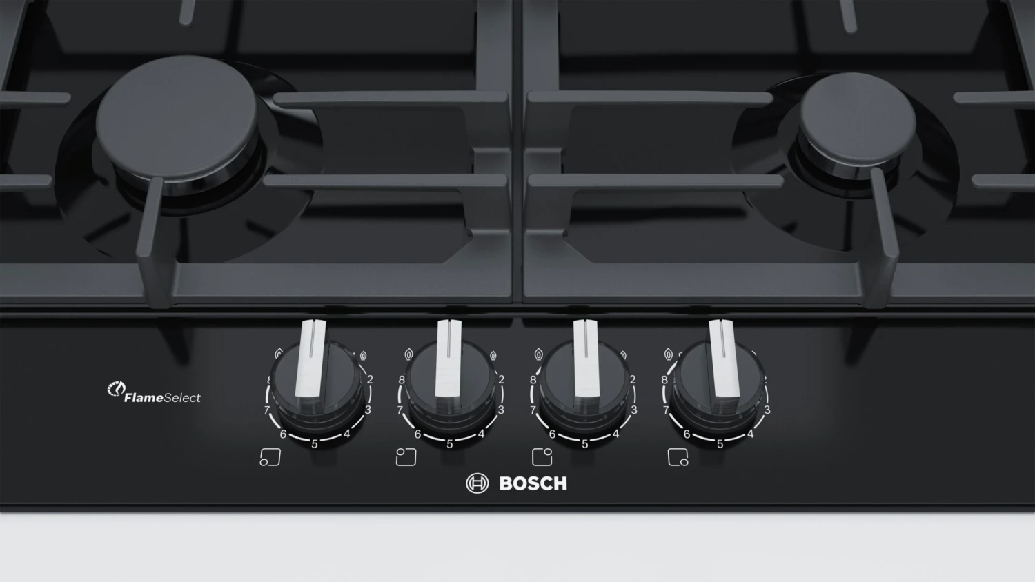 - The stainless-steel gas hob with flame select: Achieve perfect cooking results thanks to nine precisely defined power levels