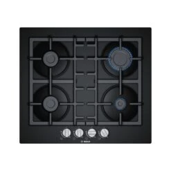 This hob from Bosch features 4 burners ensuring you have plenty of space to cook all of your favourite dishes. The durable cast iron supports ensure your pans are safely secured no matter how heavy. The easy-to-use sword knob controls mean you can get straight to your recipes too – just push and twist for automatic ignition and an instant burst of heat.