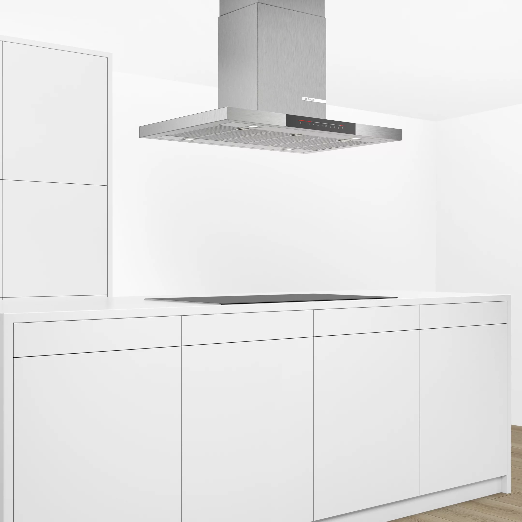 This stylish island chimney hood, from Bosh, would perfectly complement an island hob installation.