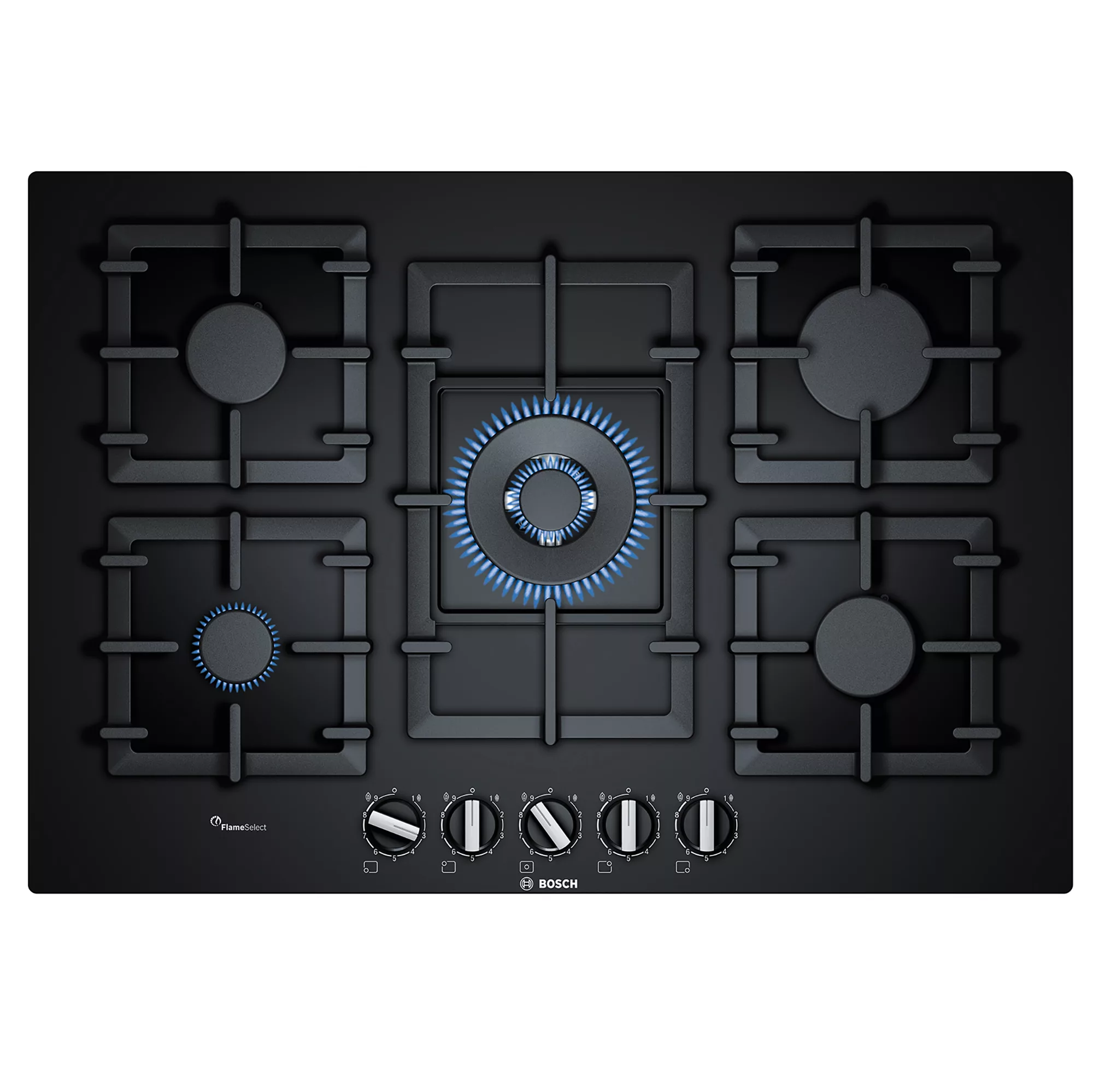 - The tempered-glass gas hob with FlameSelect allows you achieve perfect cooking results thanks to nine precisely defined power levels.