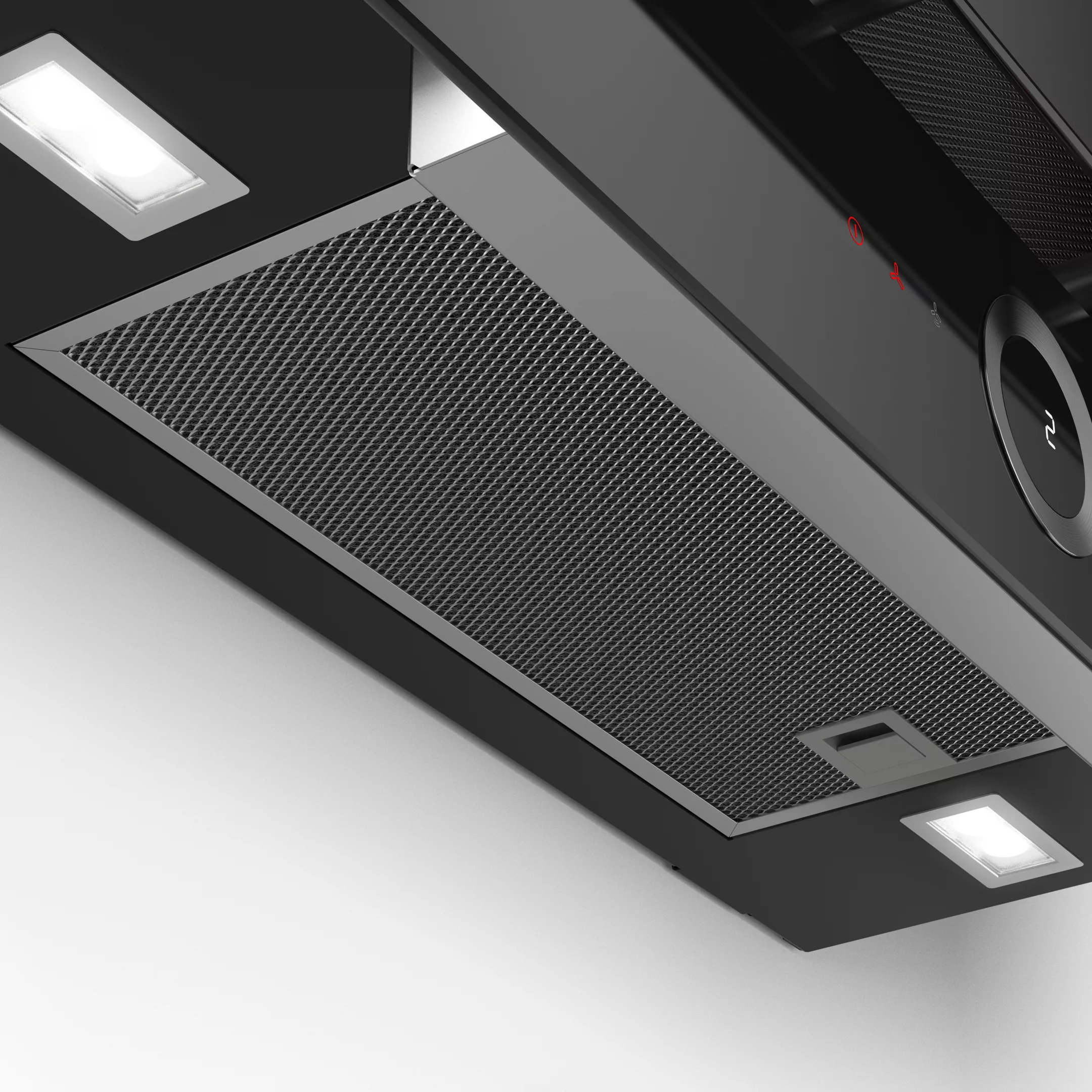 The flat design of this hood alloys you always keep an eye on your pots and pans.