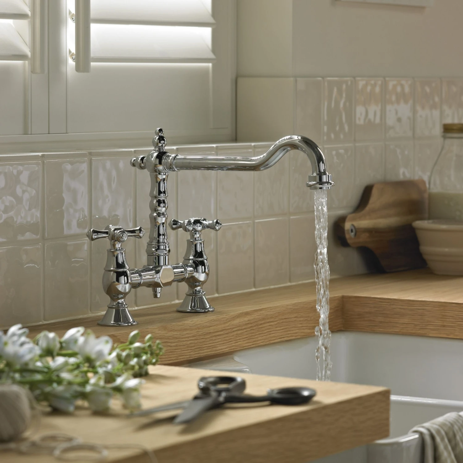 This chrome-plated bridge mixer tap from Bristan’s Colonial range brings a stylish finishing touch to your kitchen. It’s suitable for high pressure systems.
