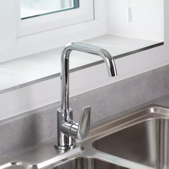 - The hard-wearing, flawless chrome finish on this mixer tap will last for years, and it is scratch resistant and salt spray tested to ensure additional durability. This tap is designed to fit any standard kitchen sink, and uses a unique patented Easyfit technology kit for quick installation from the top of the sink.