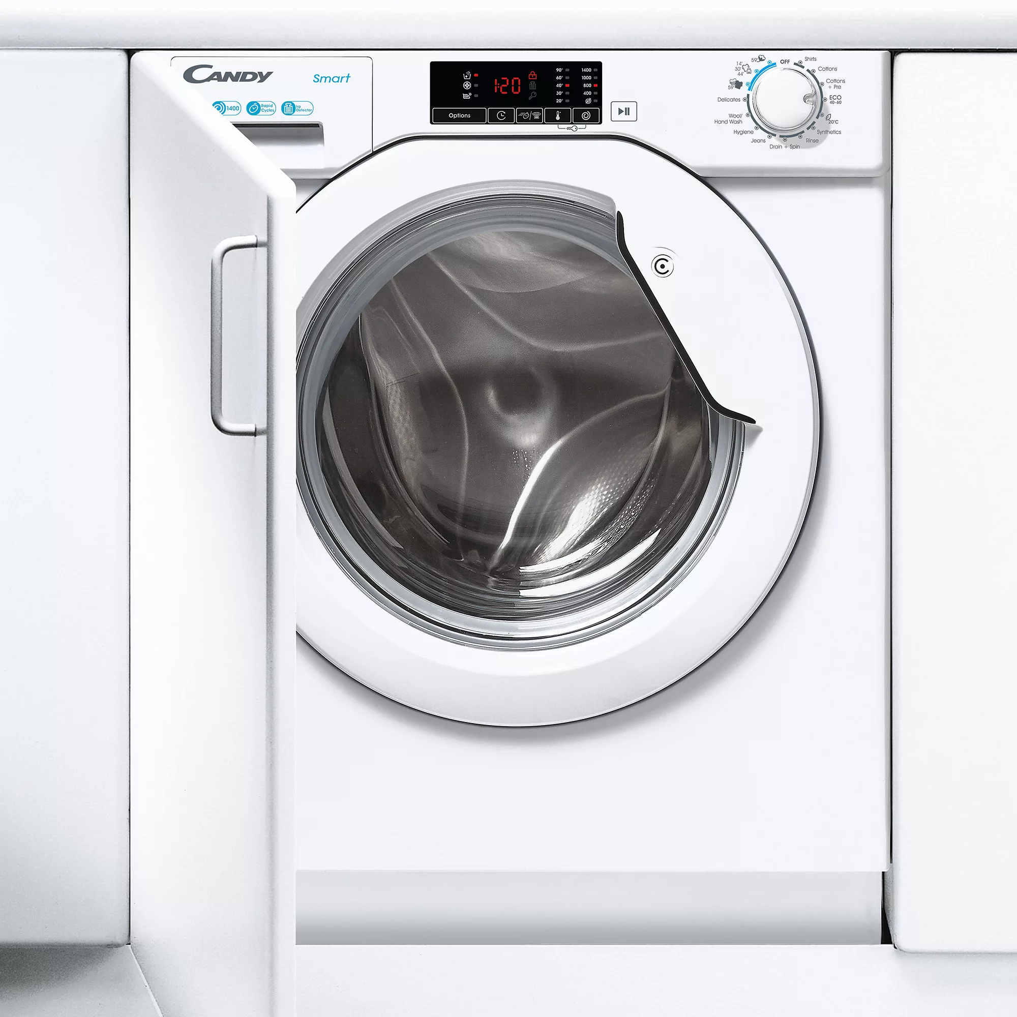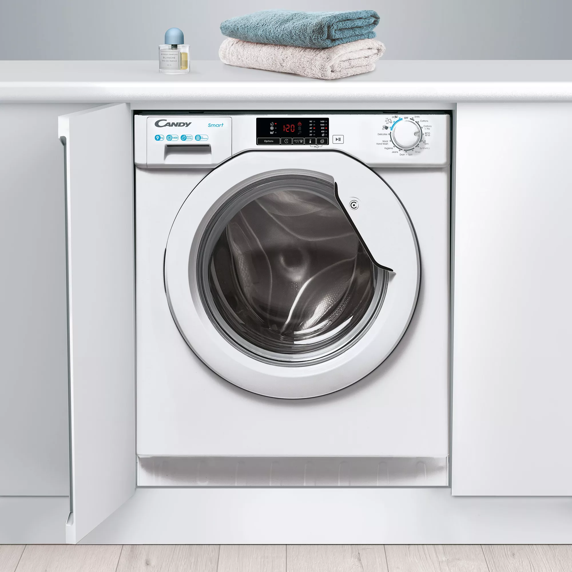 The Candy 49D1W4-80 built-in washing machine has a large capacity of 9kg and is packed with smart features that make it easy to care for your clothes and fabrics. With its variety of cycles and settings, you can easily find the perfect wash for any type of garment.