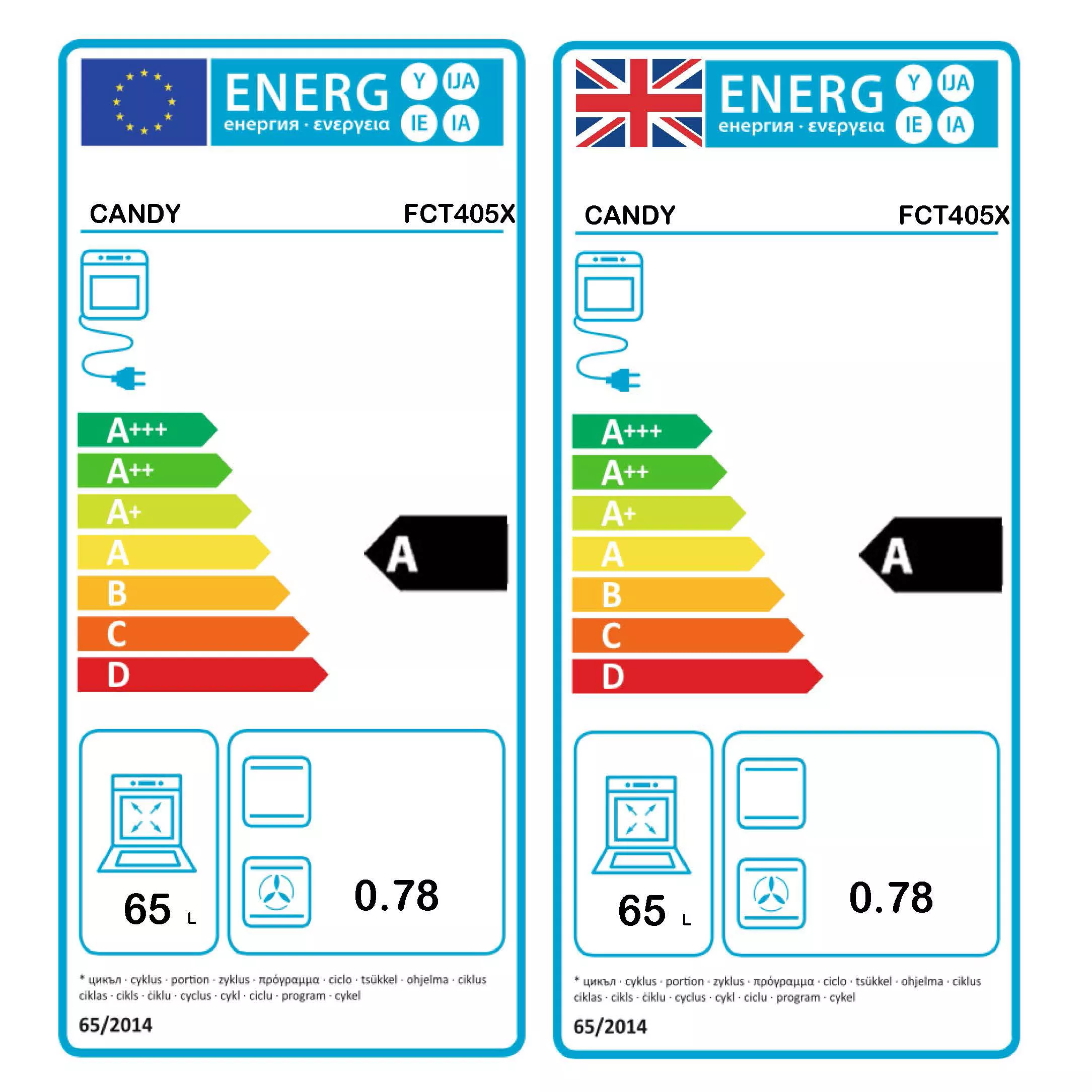 | Main oven capacity | 65L |