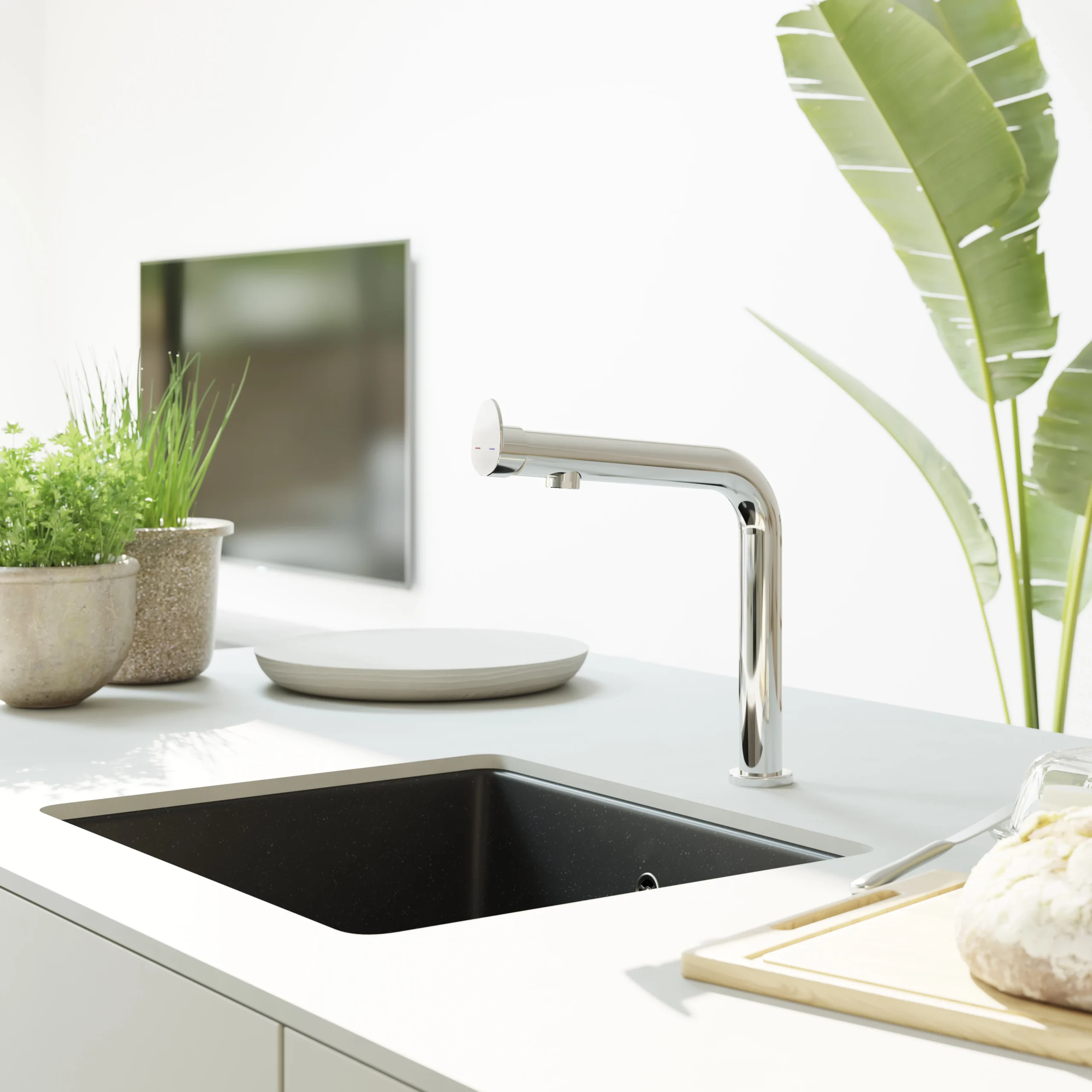 This Cascabel chrome-plated side lever kitchen tap is perfect for the families who are eager for the combination of the great product performance and perfect design in look.