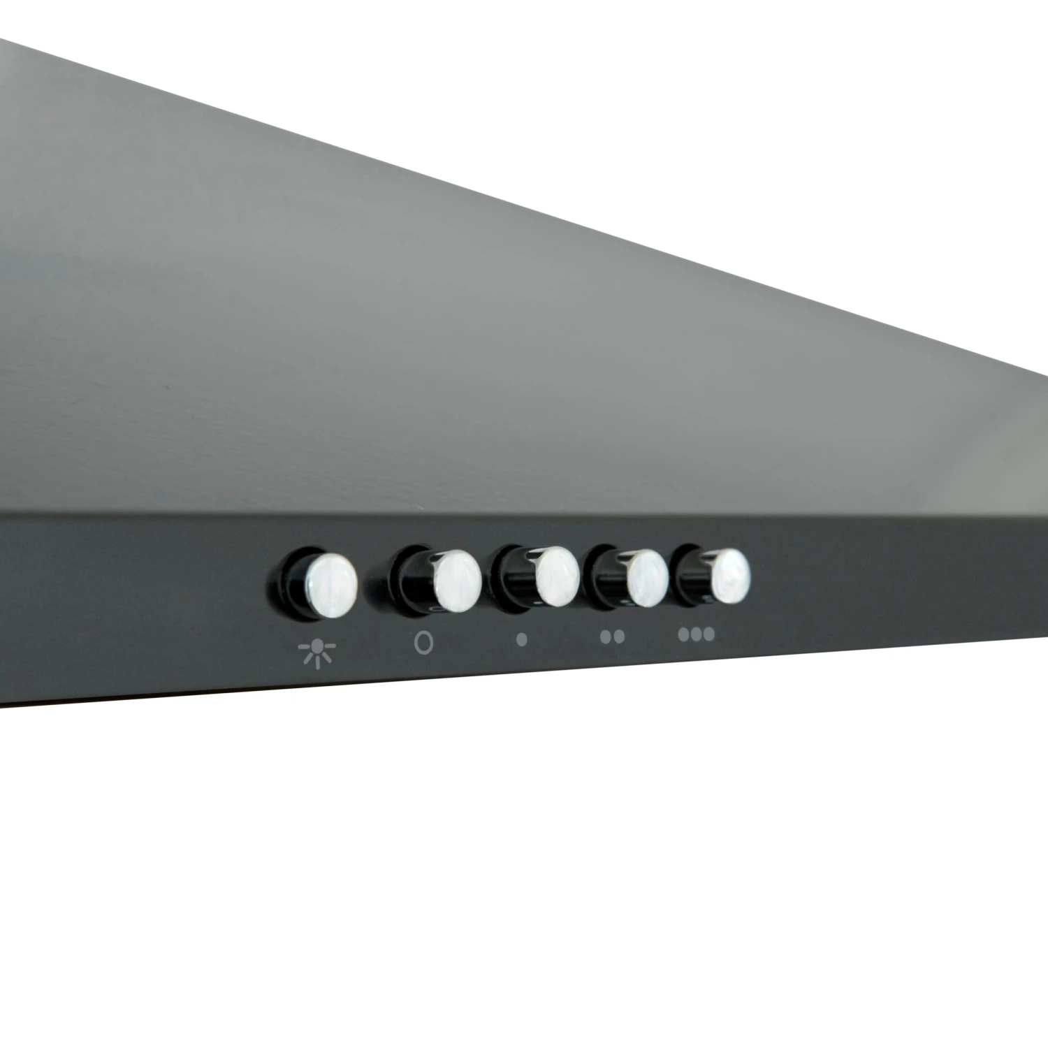 Keep your kitchen free from cooking odours with this three speed , black cooker hood. The push button controls are easy to use, perfect for when you’re concentrating on cooking more than one dish at once and the extraction rate keeps unwanted odours at bay whilst cooking. The LED light keeps your oven top brightly lit, and it comes with additional grease filter.
