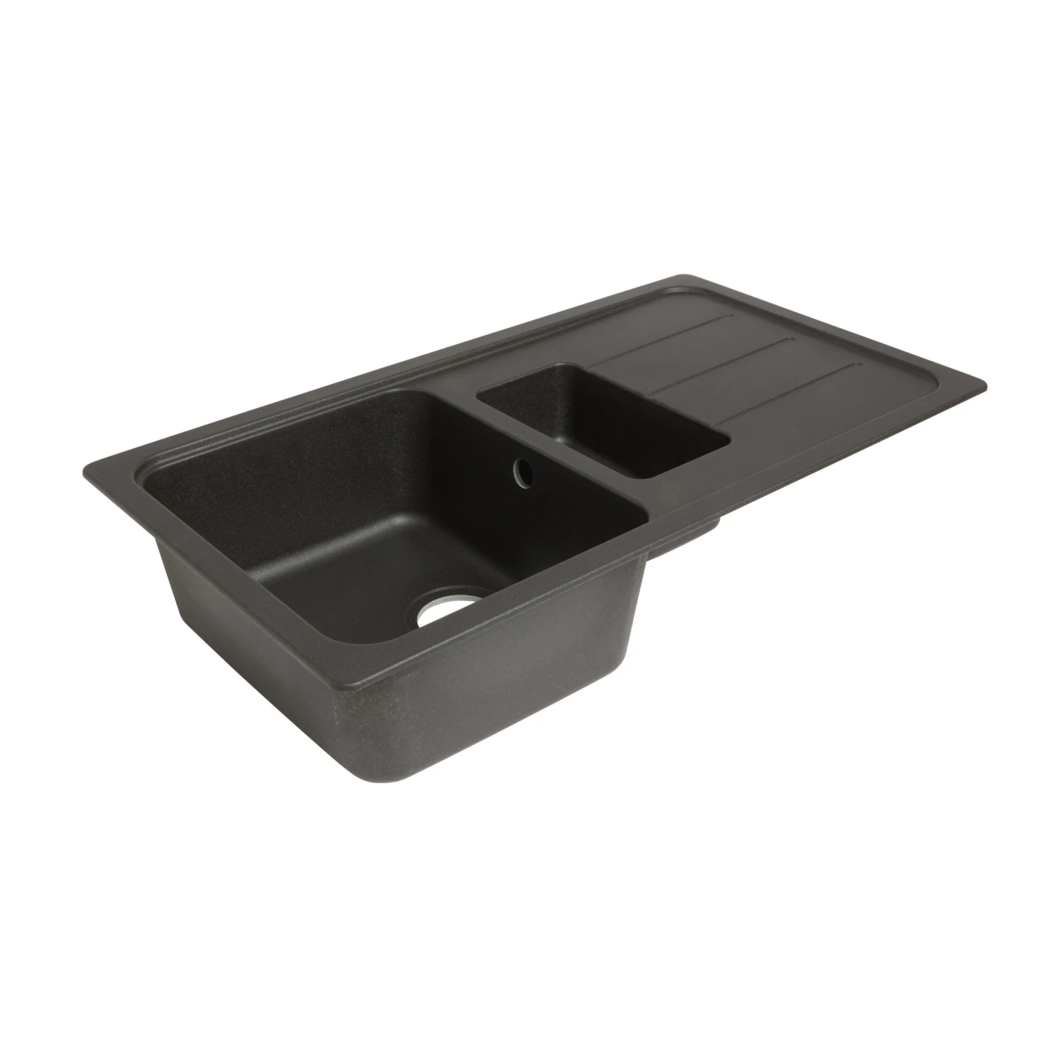 An essential addition to any kitchen, this black sink & drainer from Cooke & Lewis’s Arber range is made from sturdy composite quartz. It has 1.5 bowls, a reversible drainer and comes without tap holes, so you can choose where to position your taps.