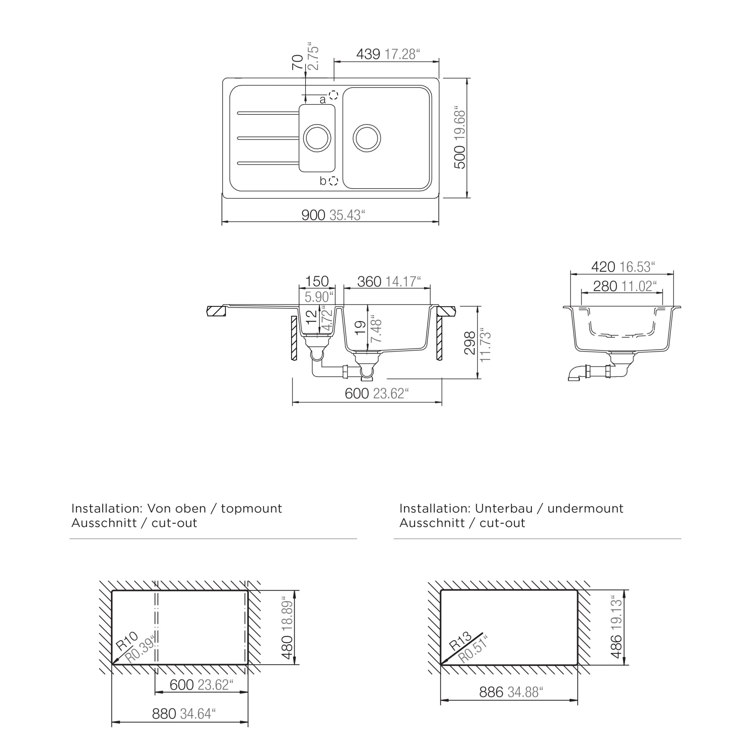 - Minimum cabinet width: 600mm