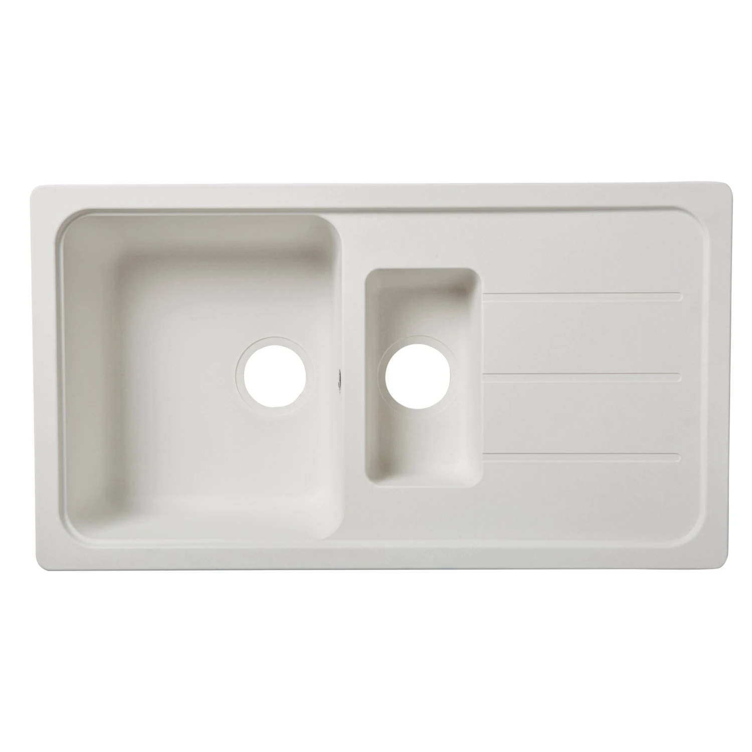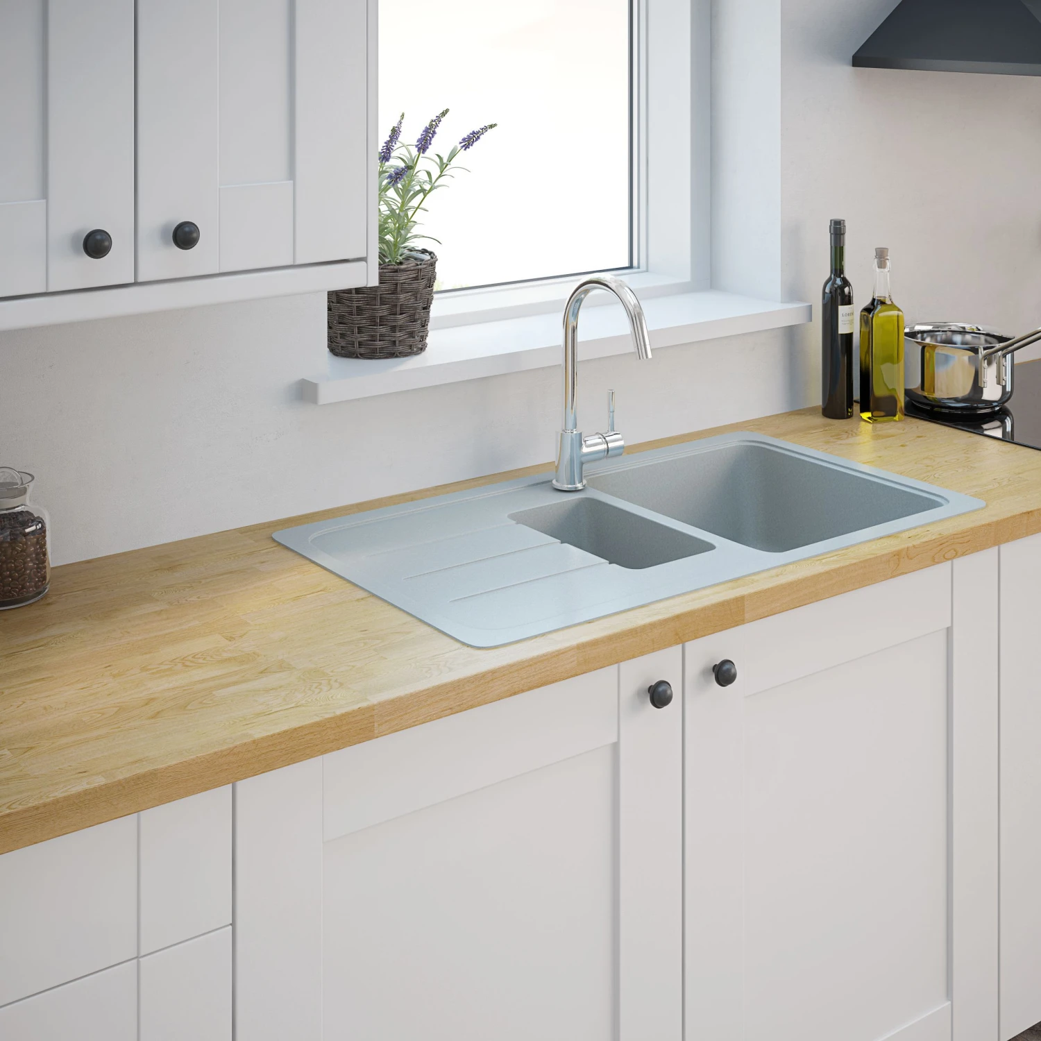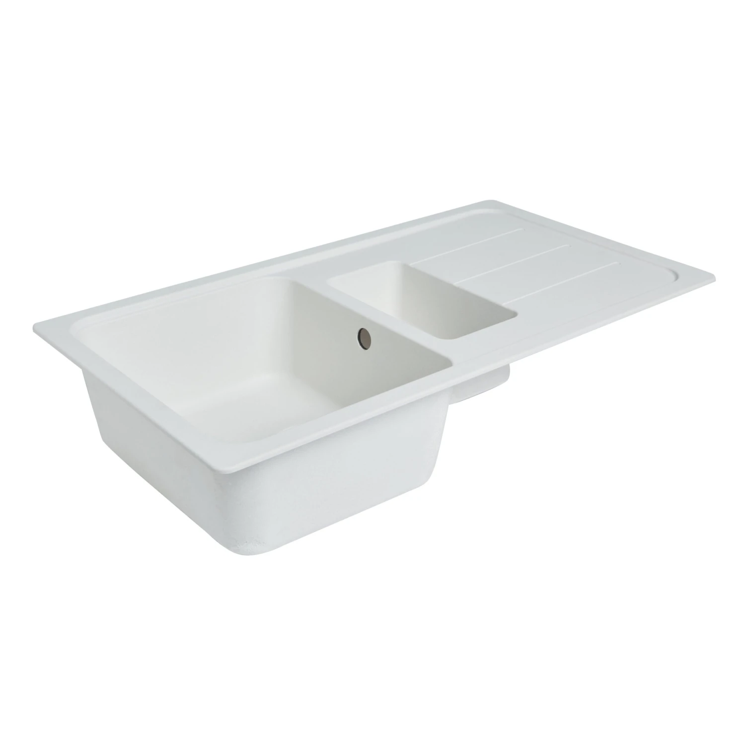 An essential addition to any kitchen, this white sink & drainer from Cooke & Lewis’s Arber range is made from sturdy composite quartz. It has 1.5 bowls, a reversible drainer and comes without tap holes, so you can choose where to position your taps.