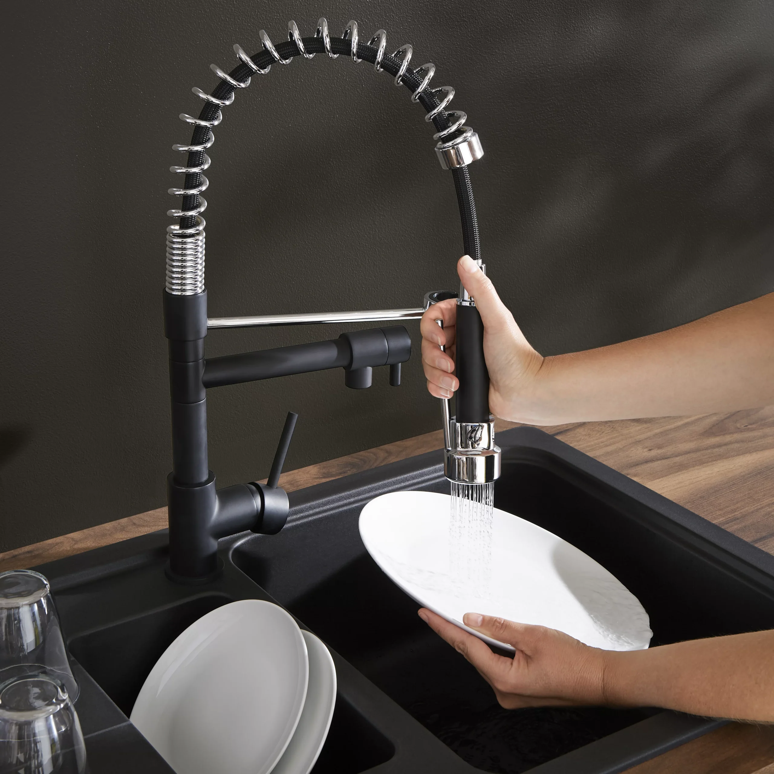 - Equipped with a dual function spray head spout that makes everyday tasks like rinsing salad a breeze
