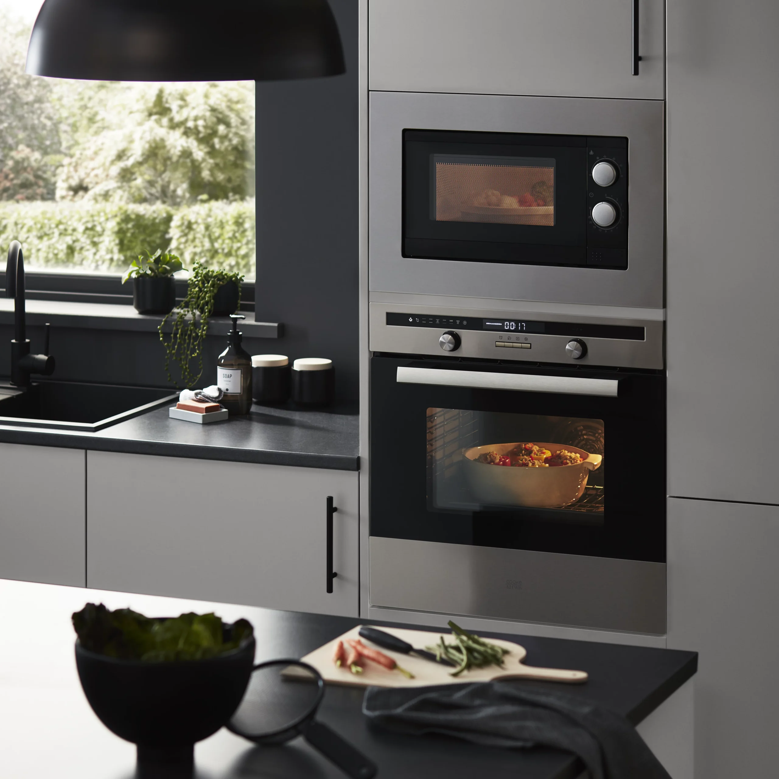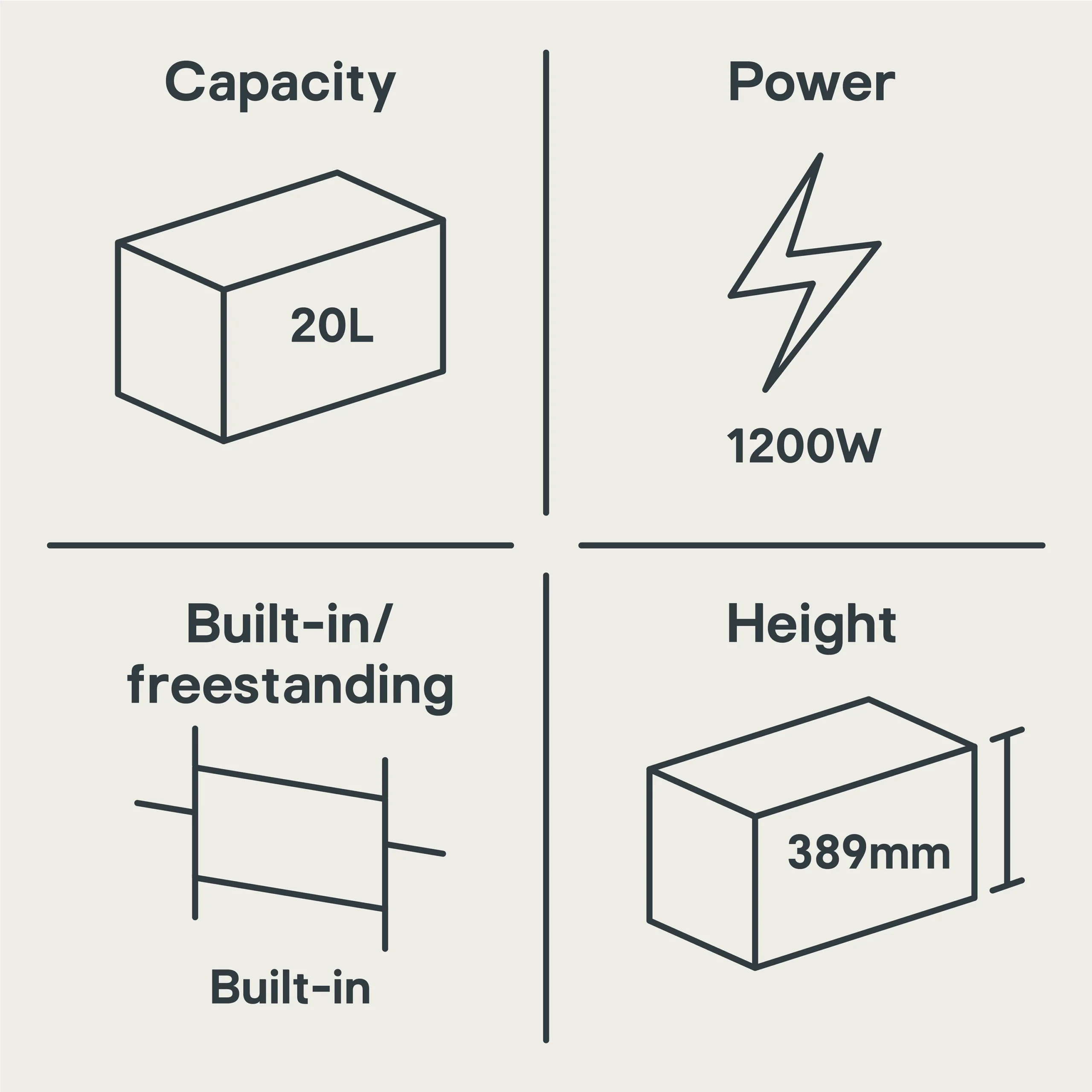 This 20L built-in microwave features rotary dial controls for ease of use.