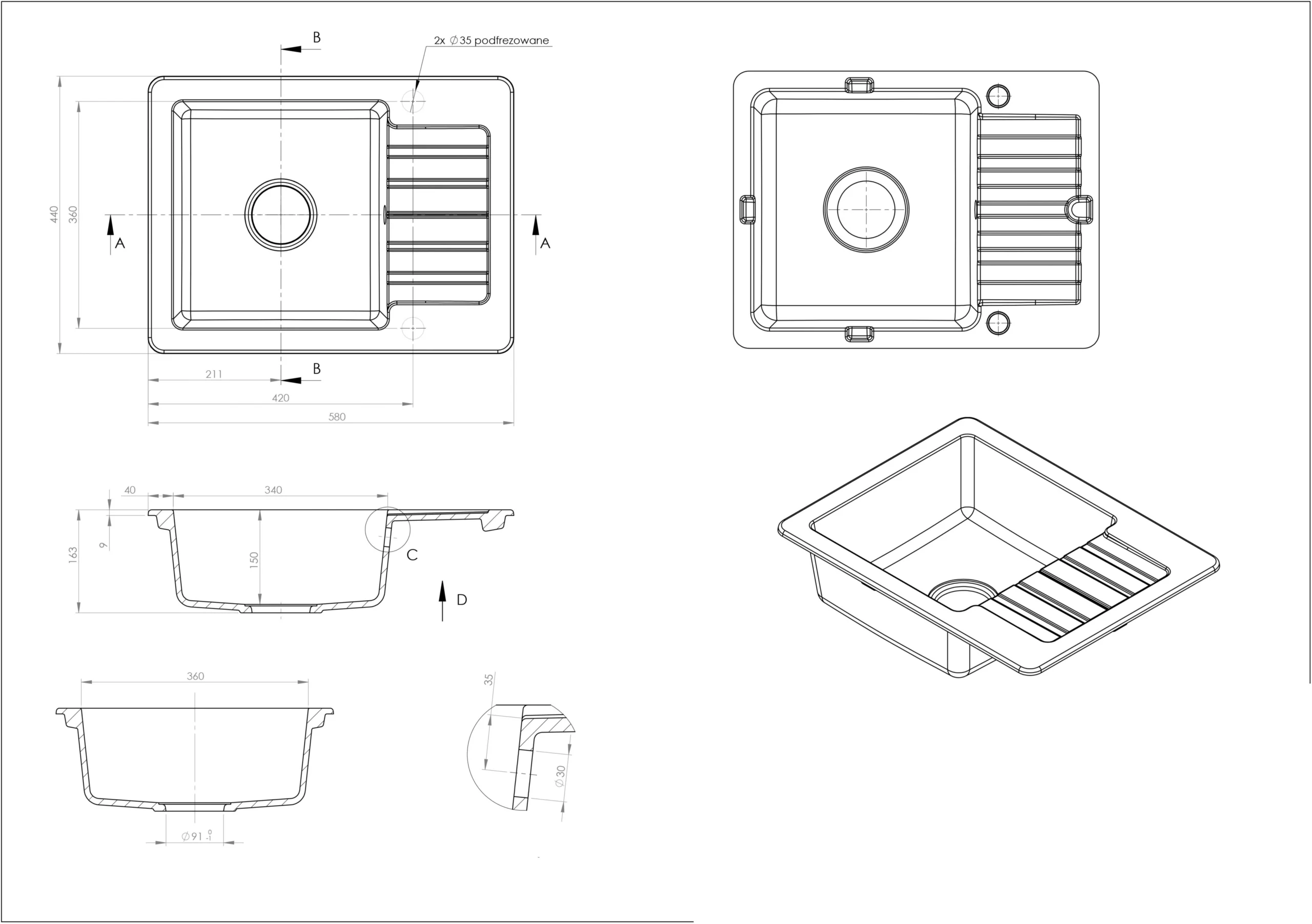 - Worktop suitability: Laminate worktop, wooden worktop and stone worktop
