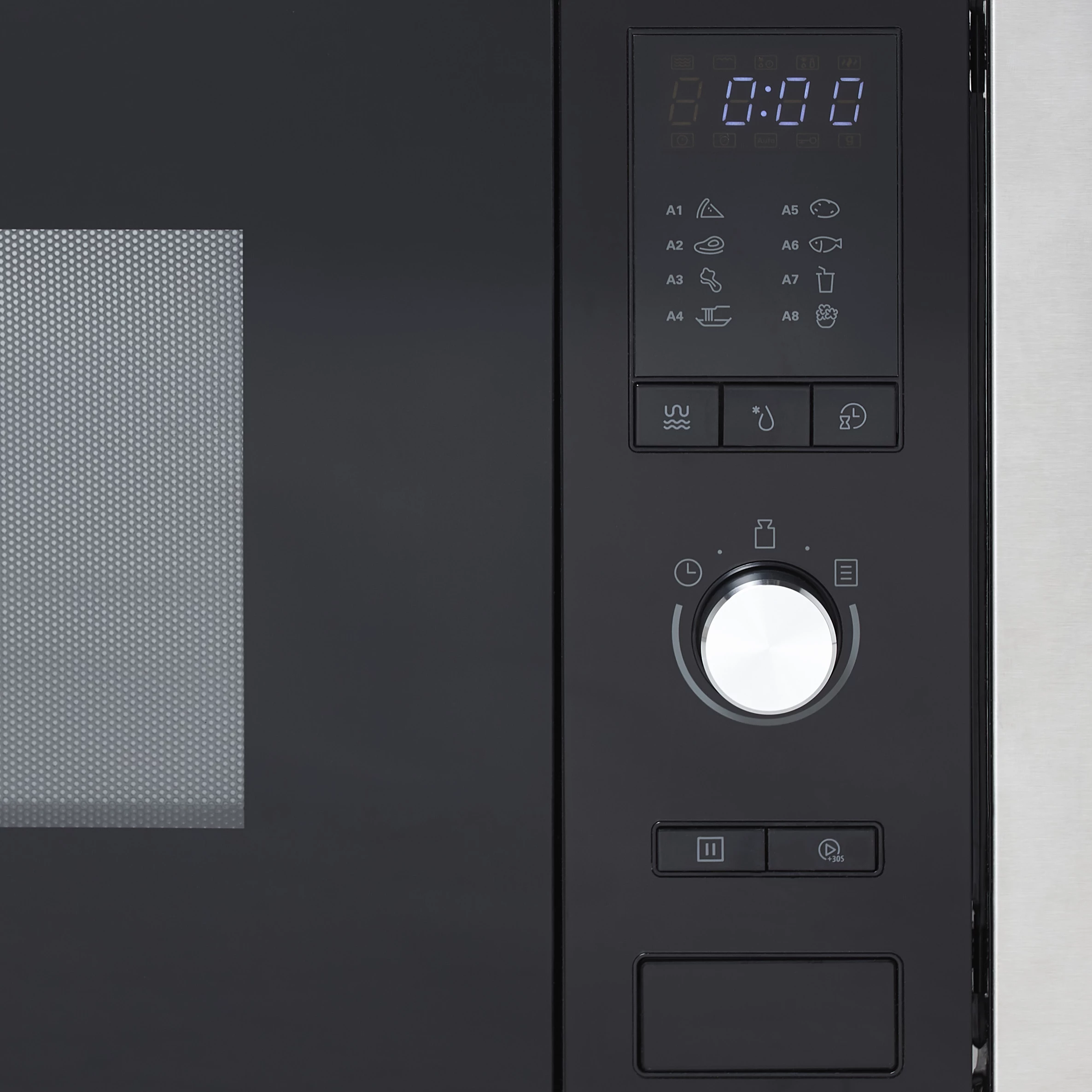 This high performance 25L built-in Cooke & Lewis microwave is easy to use with 8 pre-set functions, 1 grill and 2 combi grill settings. Use the grill function for a healthier way to cook chicken, sausages, fish and vegetables.
