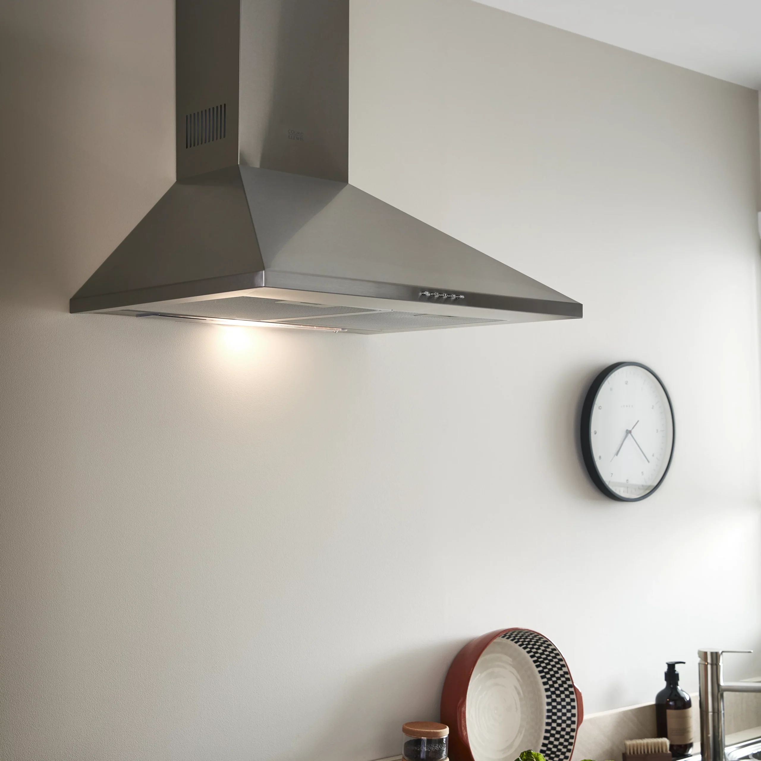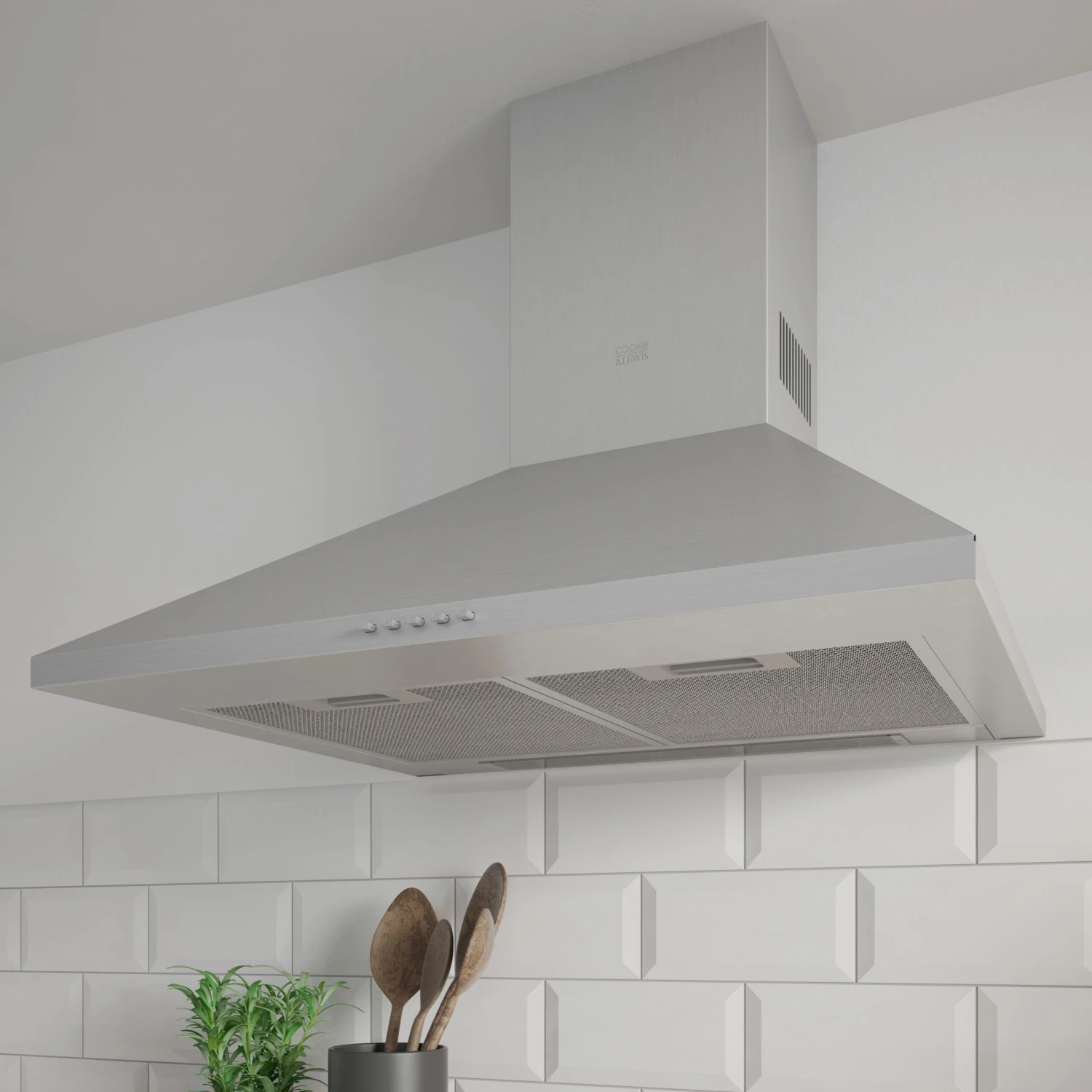 - This sleek stainless steel cooker hood from Cooke and Lewis helps remove odours and illuminates your cooking area to provide a modern, stylish, functional addition to your kitchen.