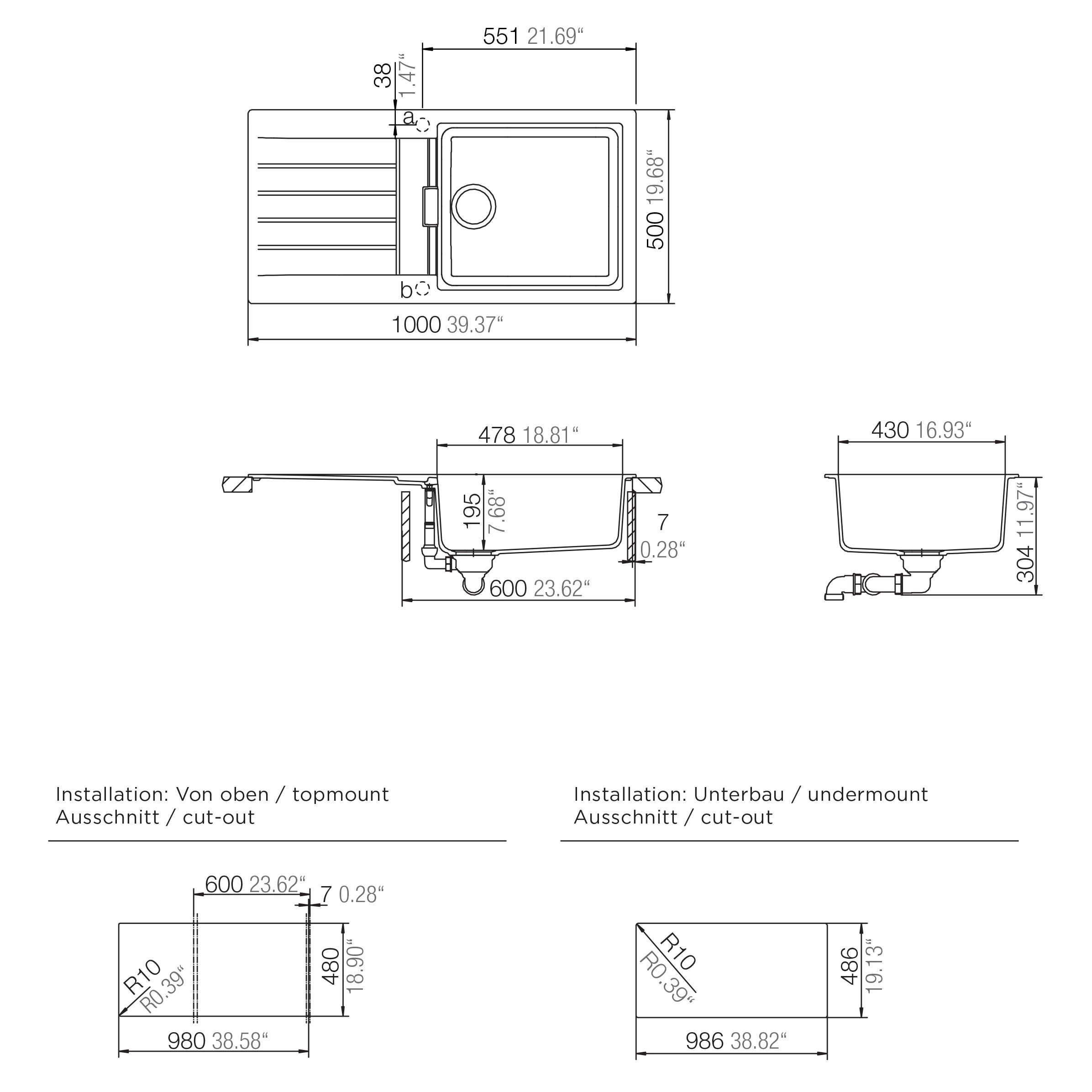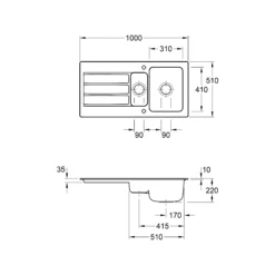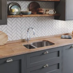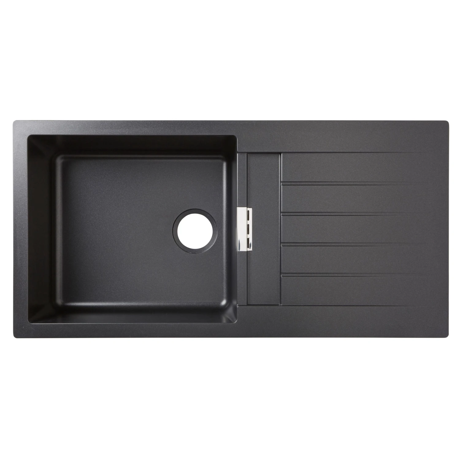 An essential addition to any kitchen, this black sink & drainer from Cooke & Lewis’s Galvani range is made from sturdy composite quartz. It has 1 bowl, a reversible drainer and comes without tap holes, so you can choose where to position your taps.