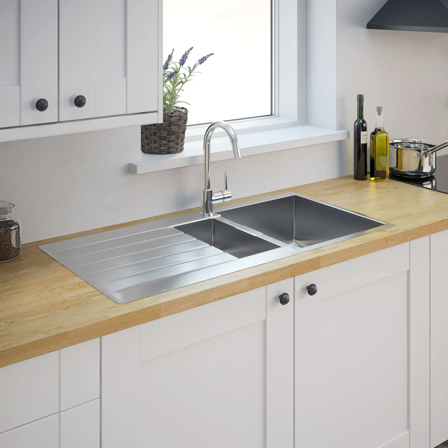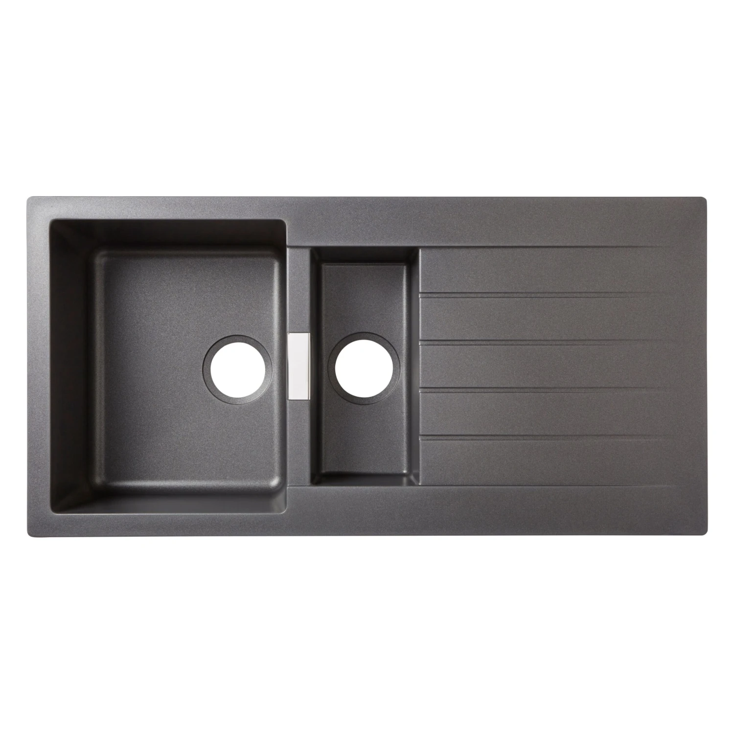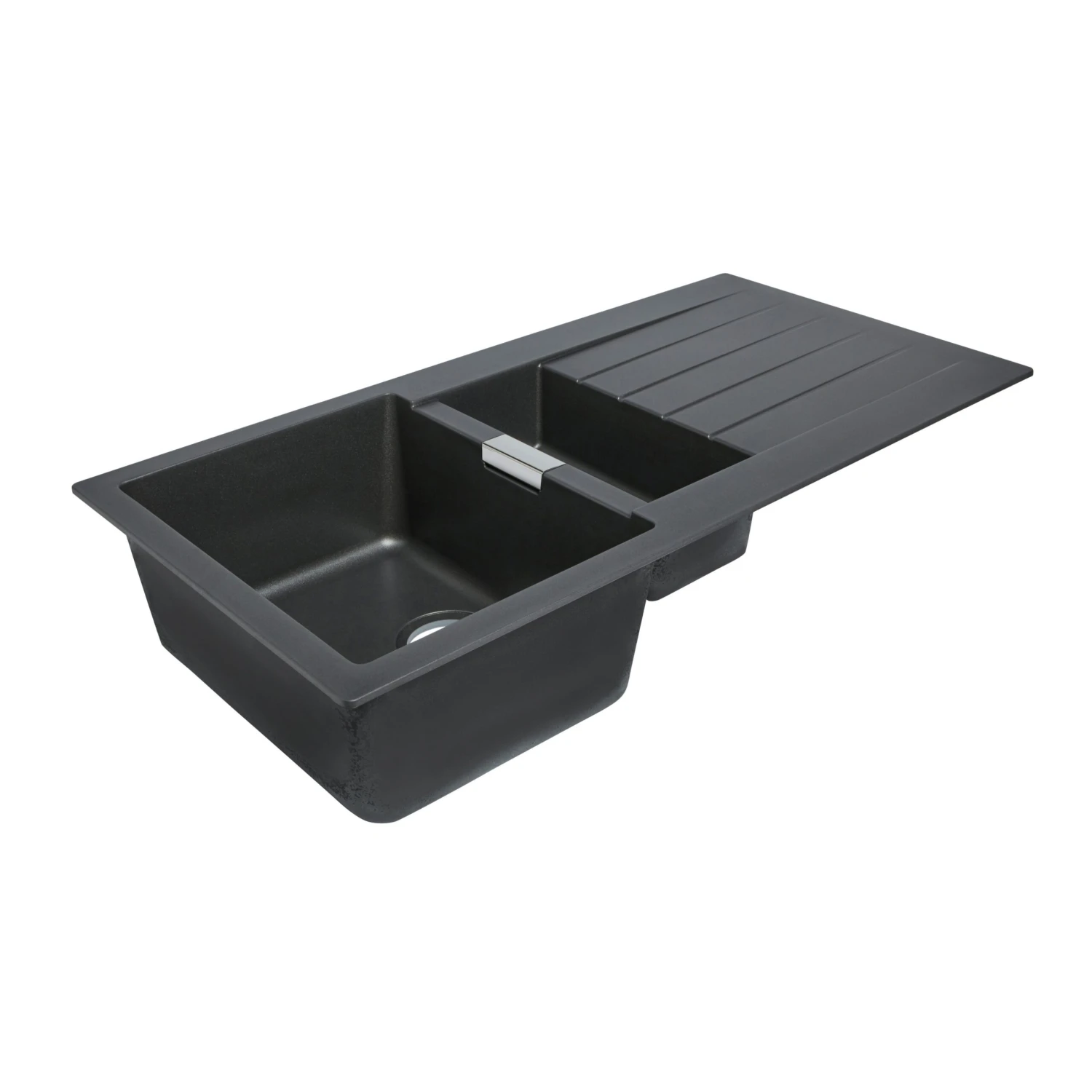 An essential addition to any kitchen, this grey sink & drainer from Cooke & Lewis’s Galvani range is made from sturdy composite quartz. It has 1.5 bowls, a reversible drainer and comes without tap holes, so you can choose where to position your taps.