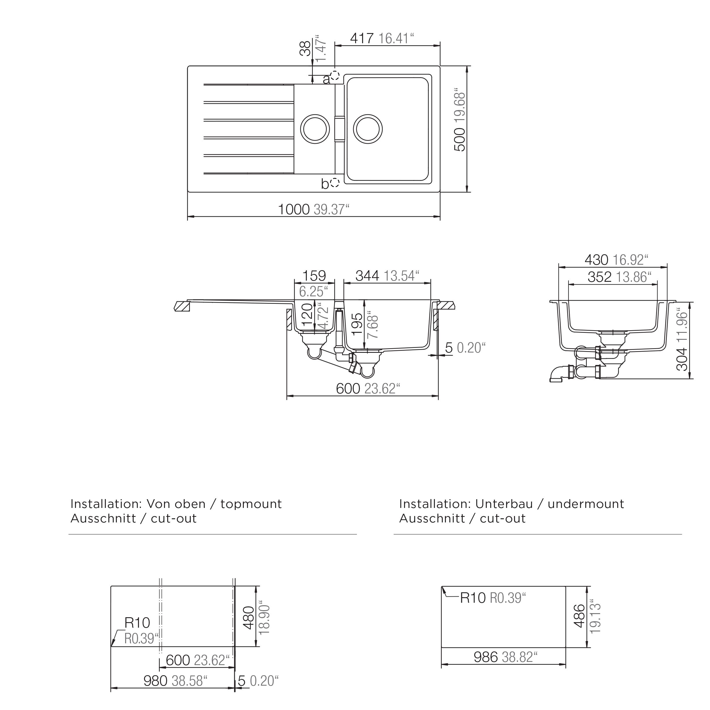 - Minimum cabinet width: 600mm