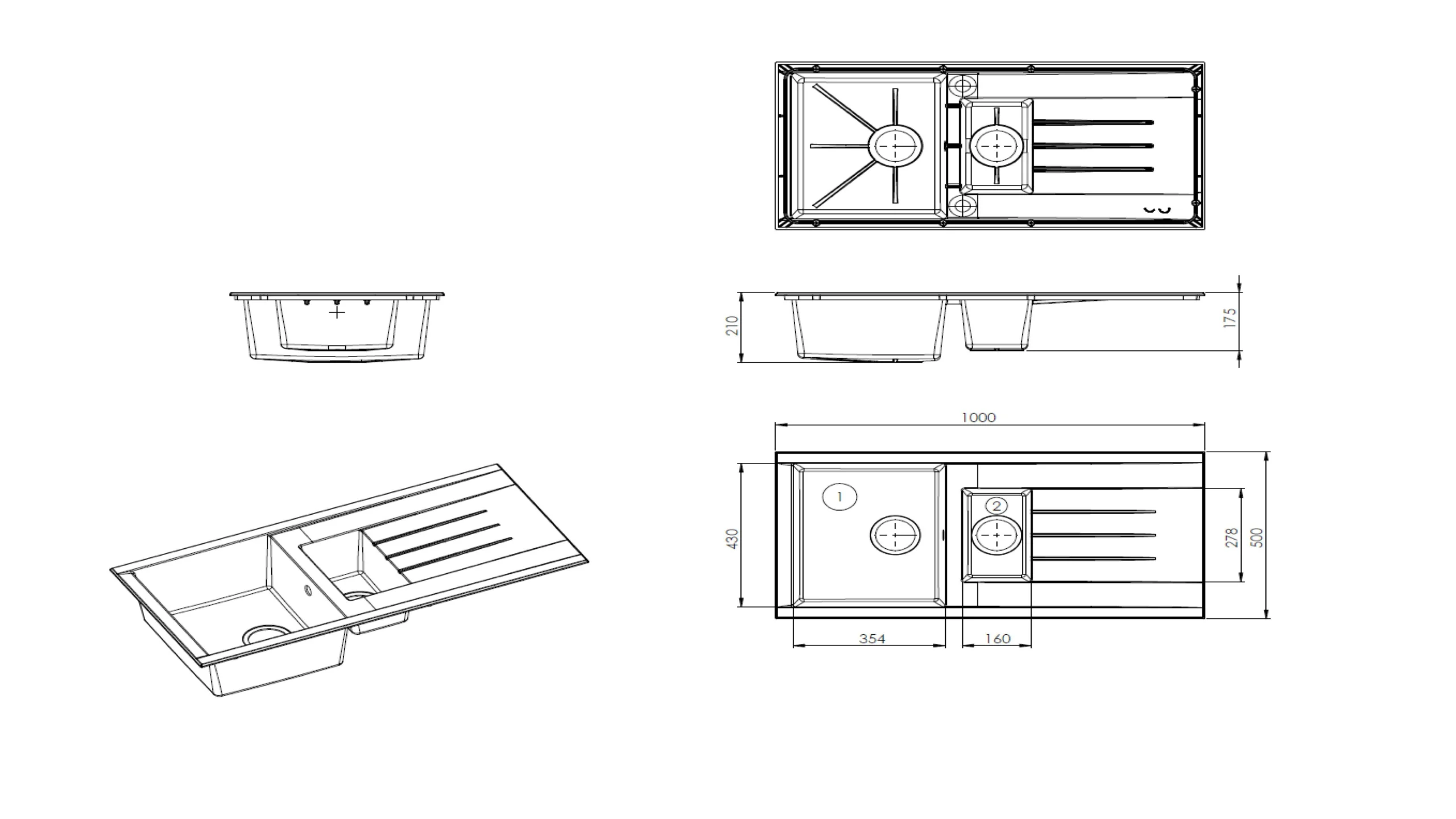 - Minimum cabinet width: 500mm
