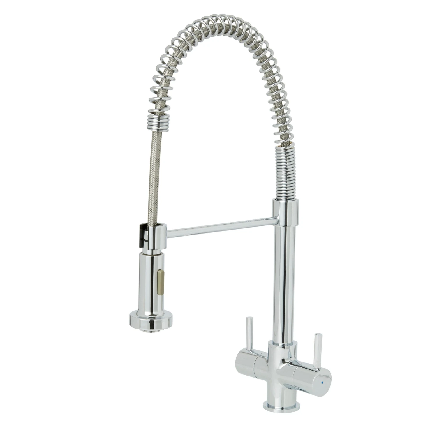 This chrome finish twin lever tap from Cooke and Lewis’ Ithaca range brings a stylish finishing touch to your kitchen. It’s suitable for high and low pressure systems.