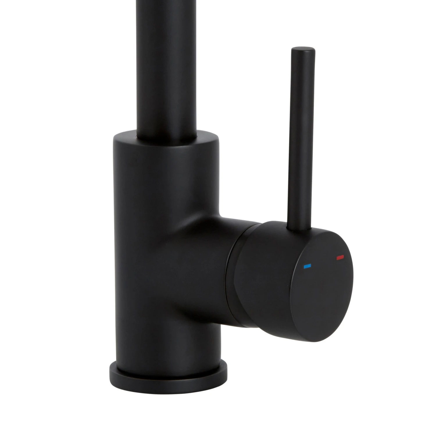 - Revamping your kitchen or finishing your dream space couldn’t be simpler with this matt black mixer tap. A unique statement piece that will make a stunning addition to any busy home, great to enhance metallic accents in an industrial style kitchen. Featuring swivel spout and single lever, helping you do the dishes no matter the size of your sink.
