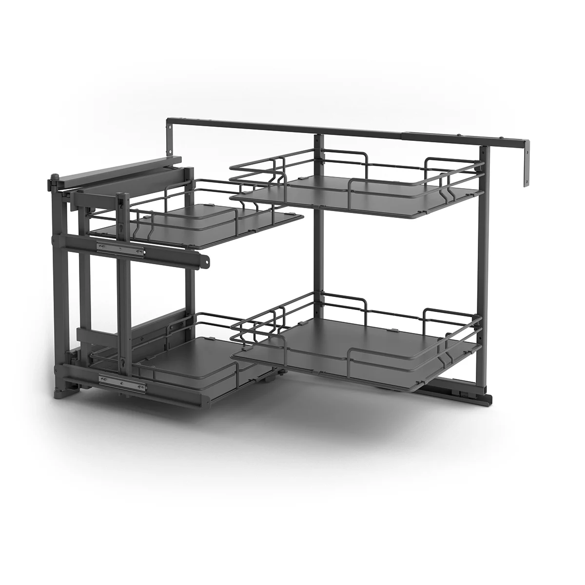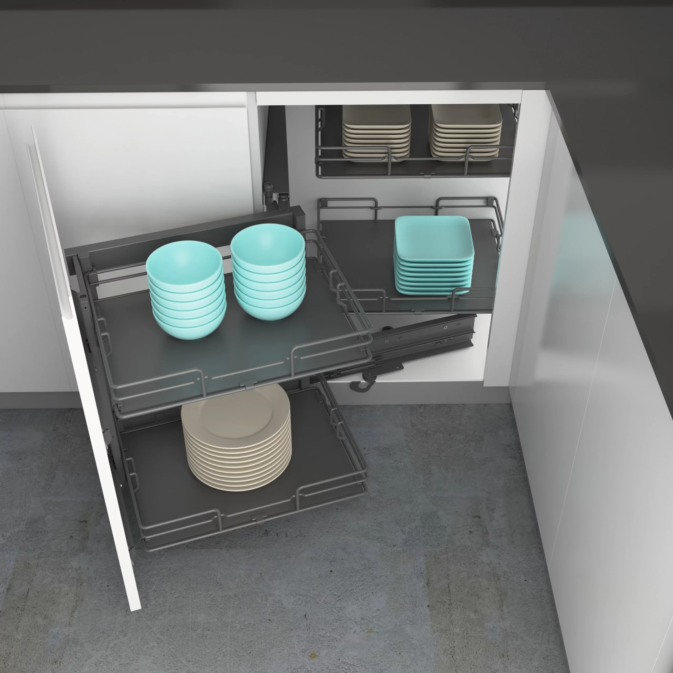 This soft-close pull-out corner storage saves you from reaching into the back of the cupboard so you can find everything you need with ease.