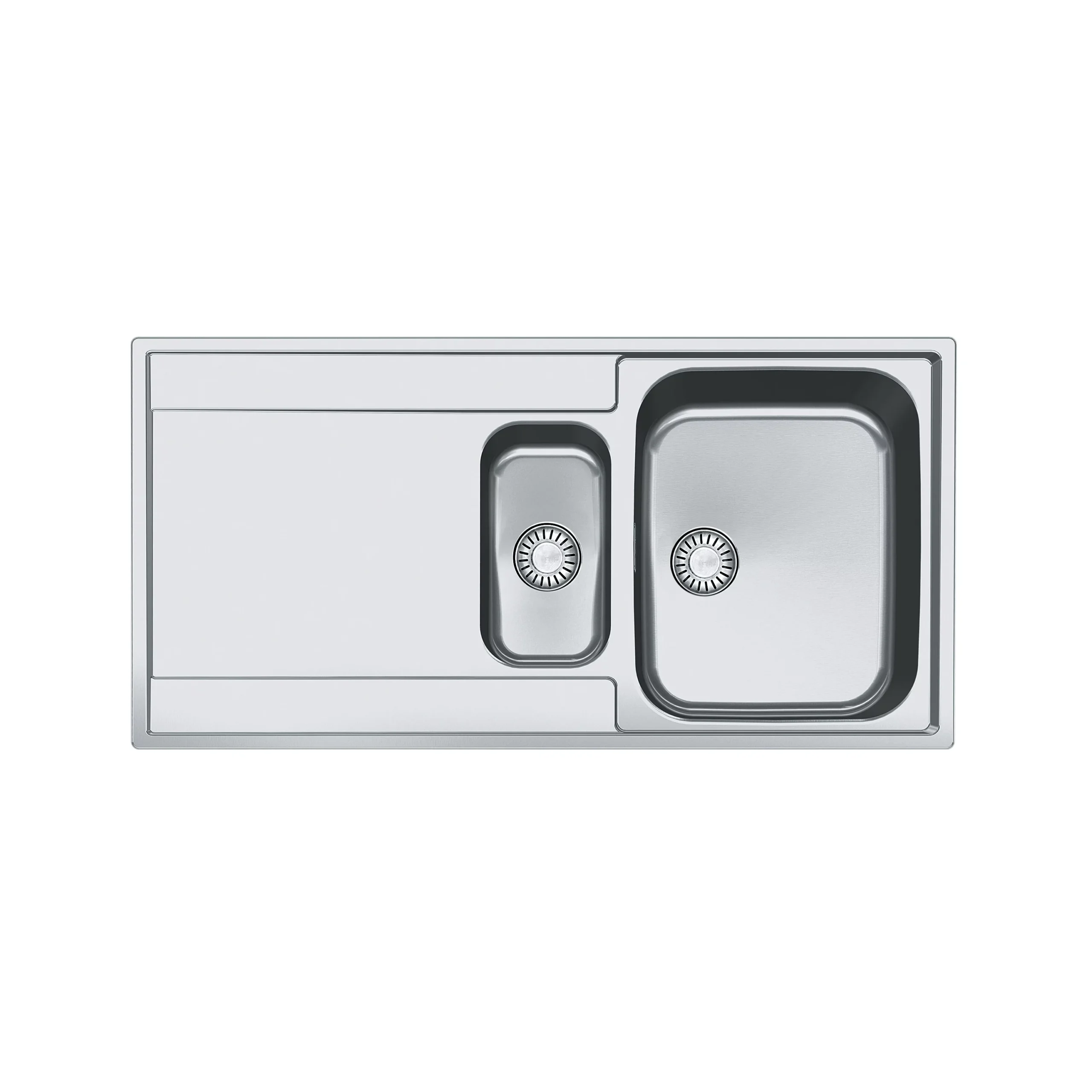 The Franke Maris left hand 1.5 bowl sink & drainer is a premium quality stainless steel sink with an elegant and minimalist looking drainer.