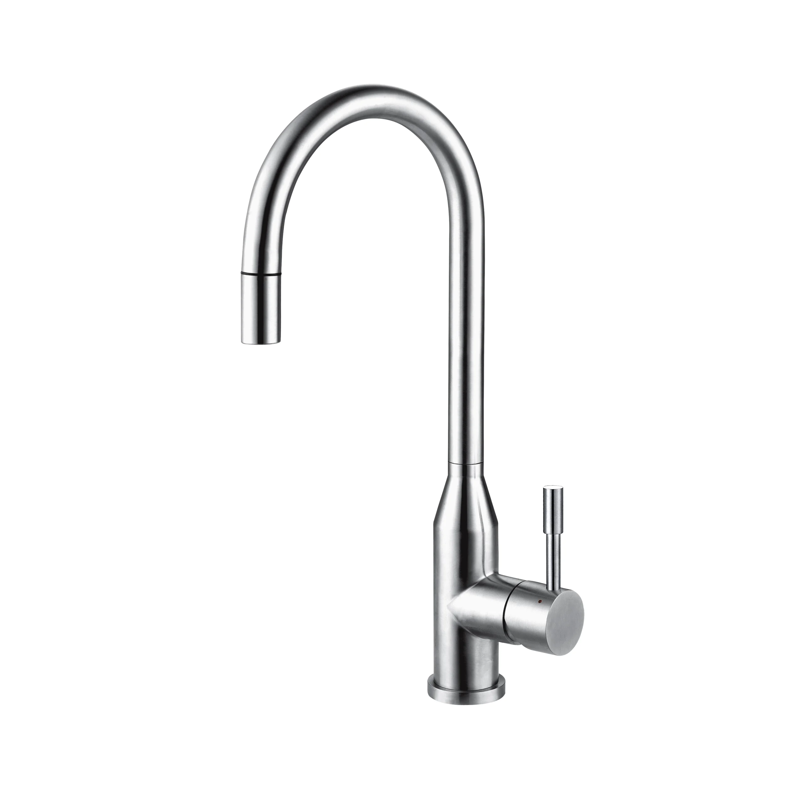 This striking solid stainless steel mixer tap with pull out hose will fit seamlessly into any style of kitchen, from country house to modern minimalist and to urban industrial.