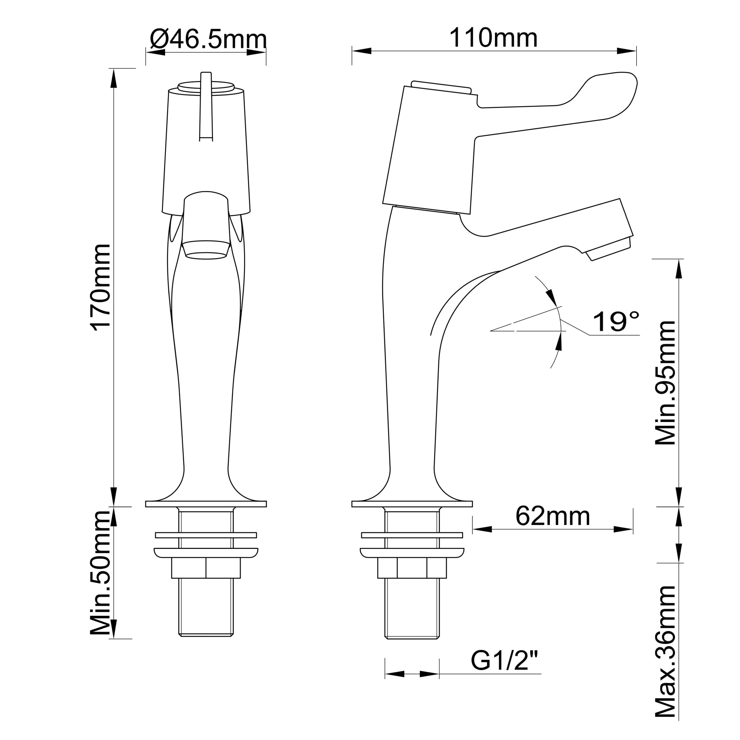- Comes with 2x back nuts, 1/2″ male threaded tail & installation instructions
