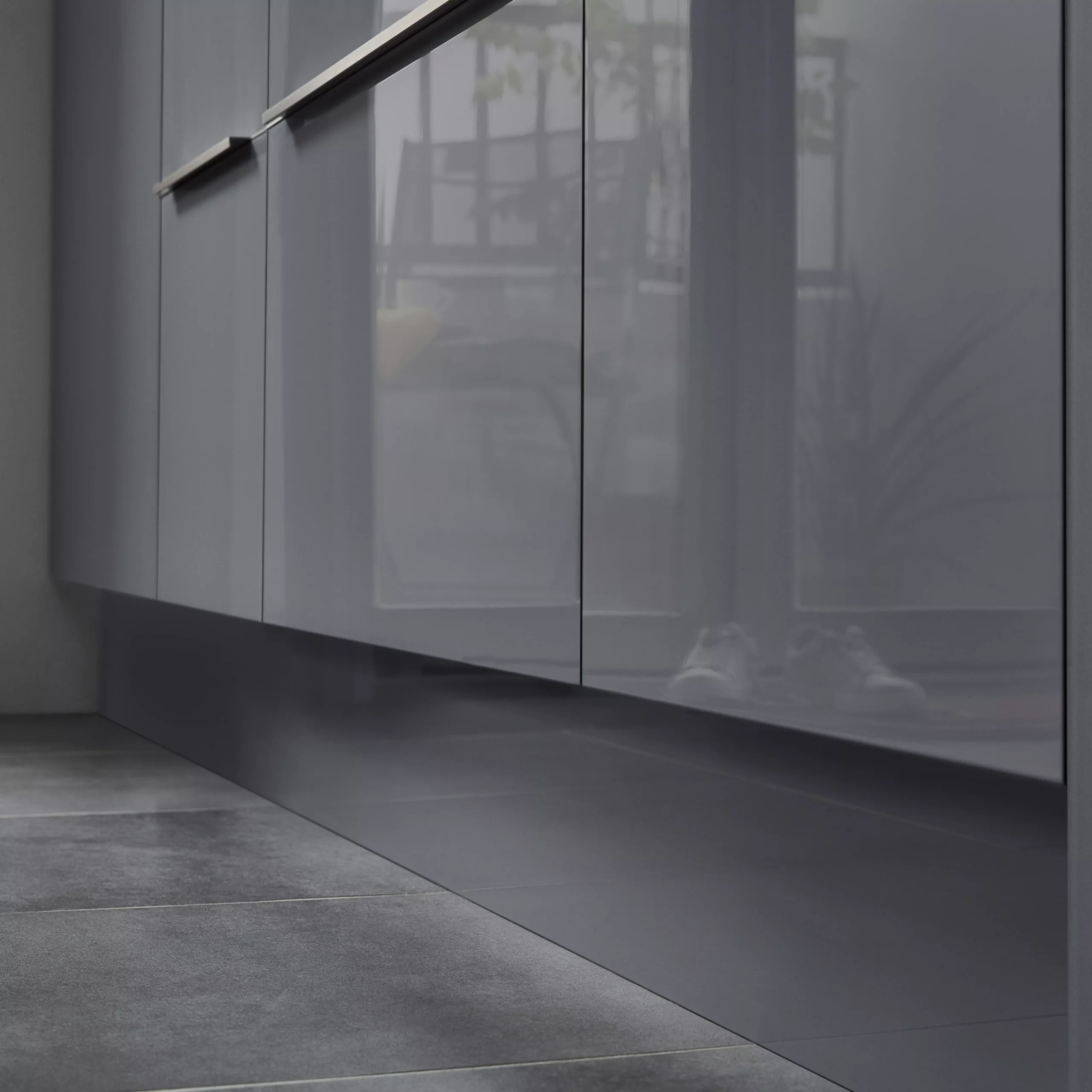 Our Alisma plinths are lacquered to give them a real depth of colour. It’s glass-like finish is great for smaller spaces as it brings light into the kitchen. The high gloss finish with the on-trend grey colour looks great in the modern home.