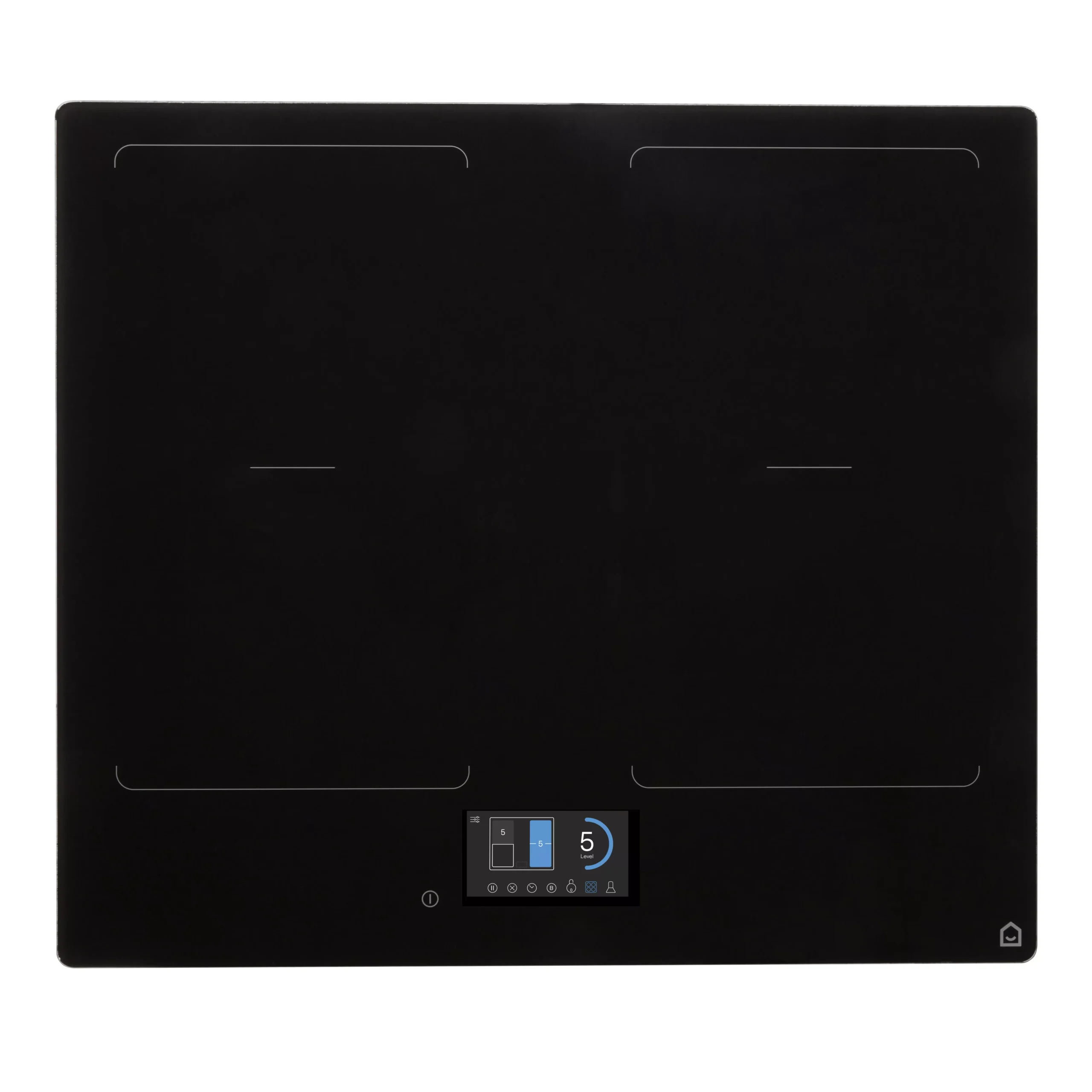 This black GHIHAC60A GoodHome induction hob is packed with features that make it easy to use and makes cooking fuss free. Our hobs have a colour TFT screen allows intuitive multi touch and gesture control of both hob and GoodHome hood. Boost functionality available on all zones allows for rapid heating, cooking suspension system, automatic pan detection system, instant cook, flexible zones, timer function which allows automatic switch off or audible alarm, child lock, residual heat indicator and time and date indicator.