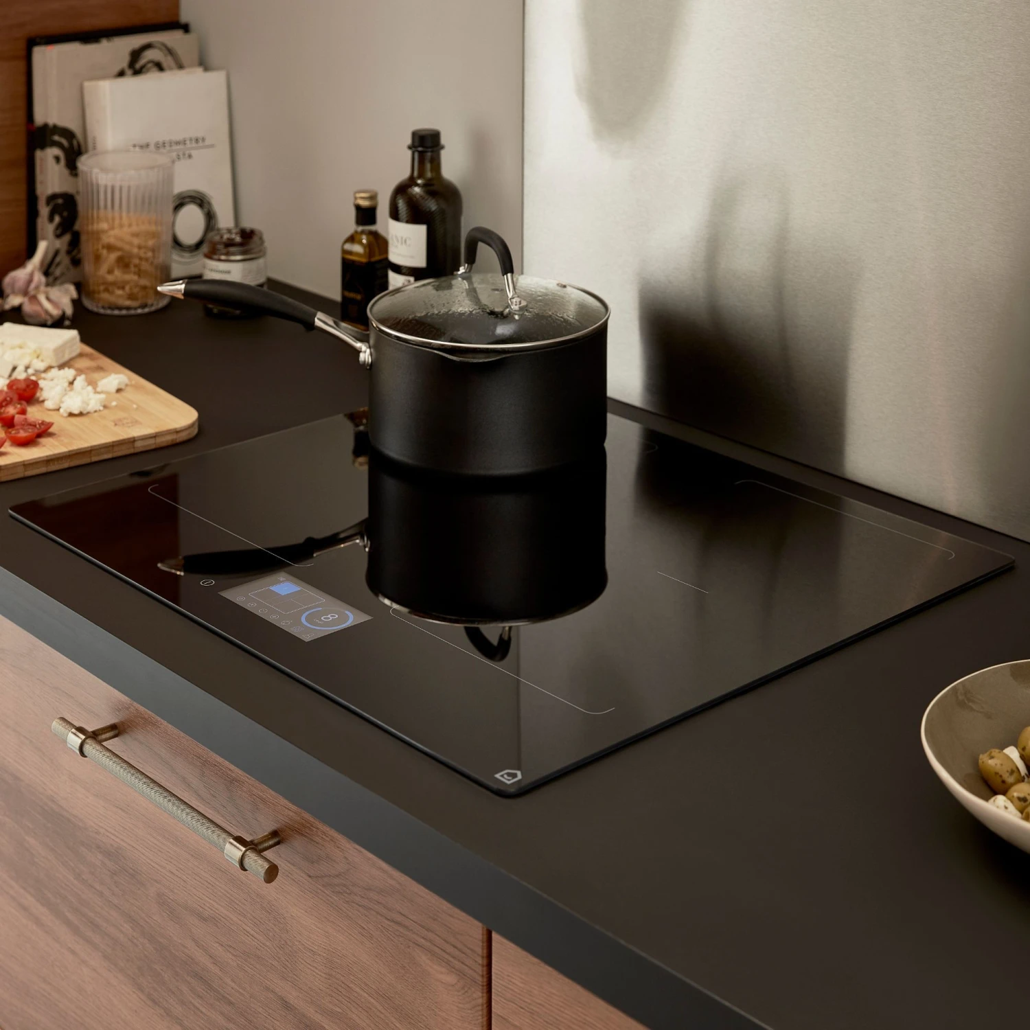- It’s flexible zone cooking means you can choose various positions to cook almost anywhere on the hob, enabling the use of multiple smaller pans or large pan