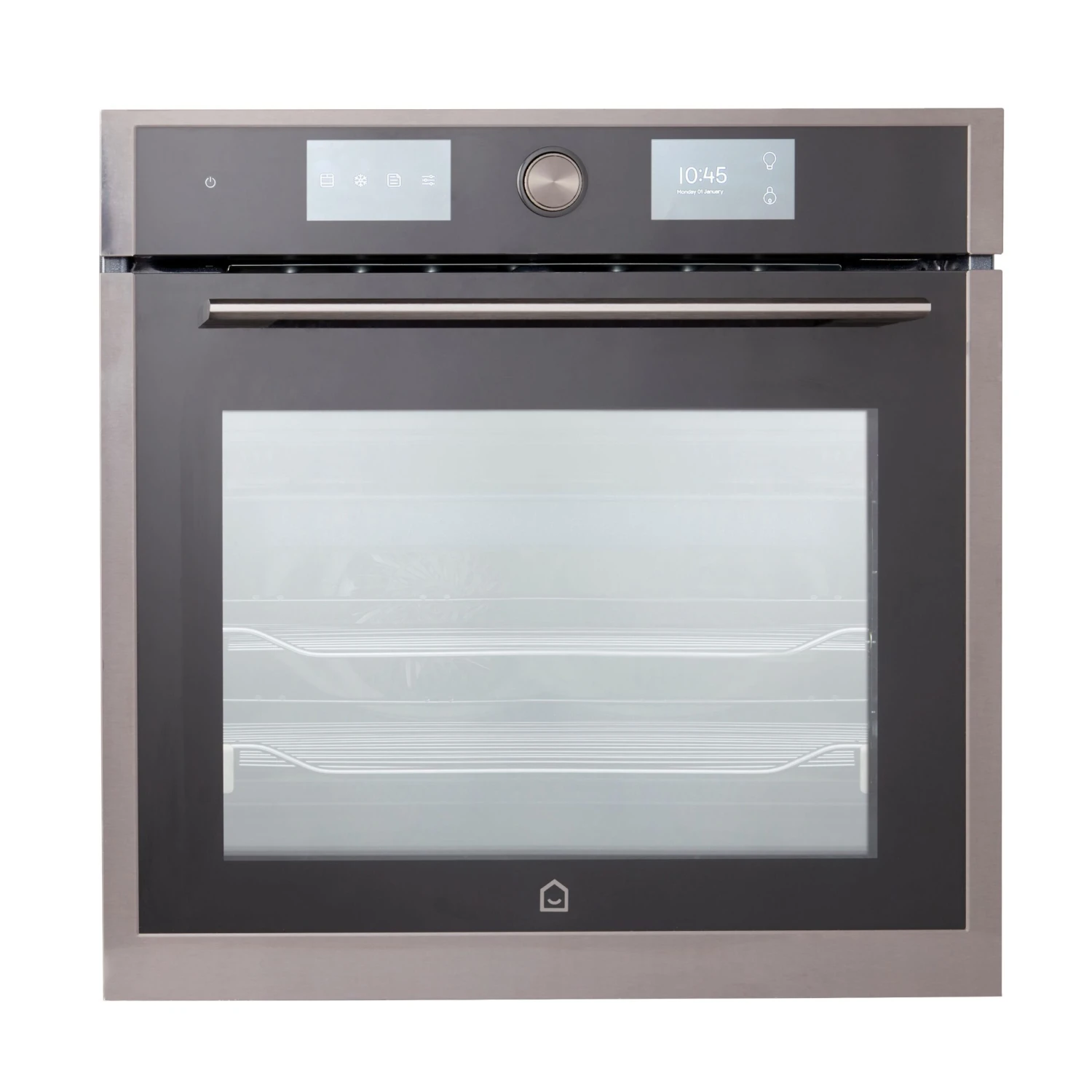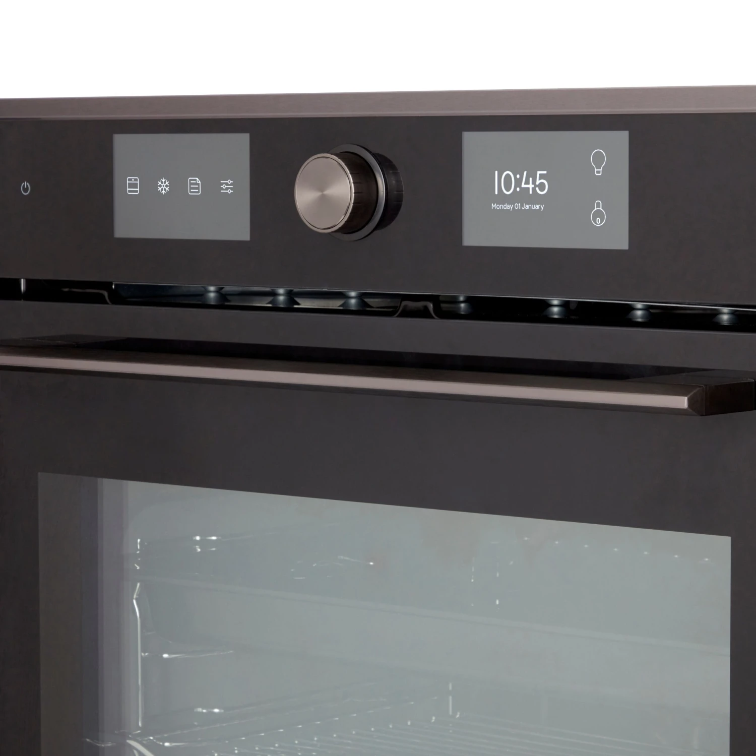 Our GoodHome appliances are packed with features that make them easy to use and cooking fuss free. This GoodHome multi function oven includes two easy to use TFT colour screens, allowing intuitive control as well as having a central control knob for ease of use. It’s other features include a capacity of 71L, telescopic runners for safe access, 5 shelf cooking positions, 2 shelves, a baking tray and grilling trivet and two internal lights for excellent illumination. There are also thirteen menu options including fan, convection, eco and plate warming enables a flexible and easy to use cooking experience. The twelve favourite cooking pre-sets that can be stored for easy access and the timer can be set to turn off the oven or track your cooking time, taking intuitive cooking to the next level. Extra functions include pause cooking, a child lock and defrosting options. The boost feature shortens pre-heat timing and one turn of the central knob with one touch of the screen activates instant cooking in seconds.