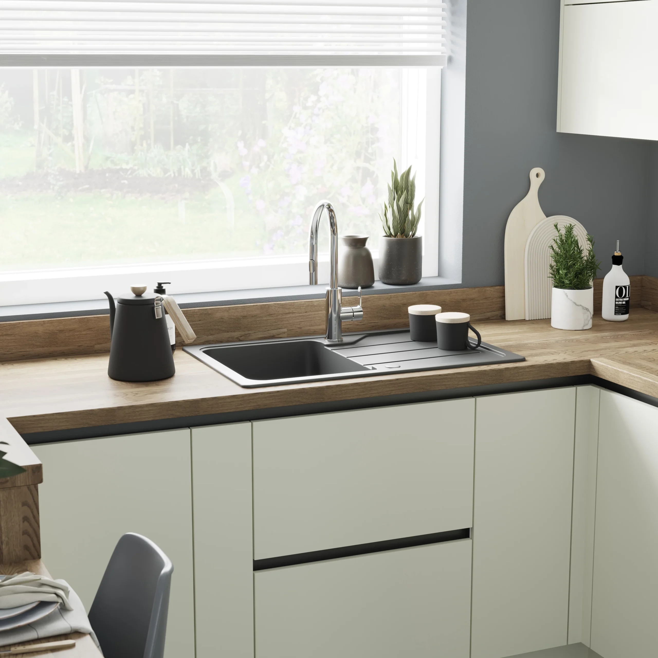 The Fatali 1 bowl composite sink & drainer is ideal for small kitchens and utility rooms. It has 1 bowl, a reversible drainer and 2 tap holes, ready for you to add the taps of your choice.