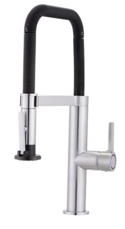 This Kamut stainless steel side lever spring neck kitchen tap is perfect for the families who are eager for the combination of the great product performance and perfect design in look.