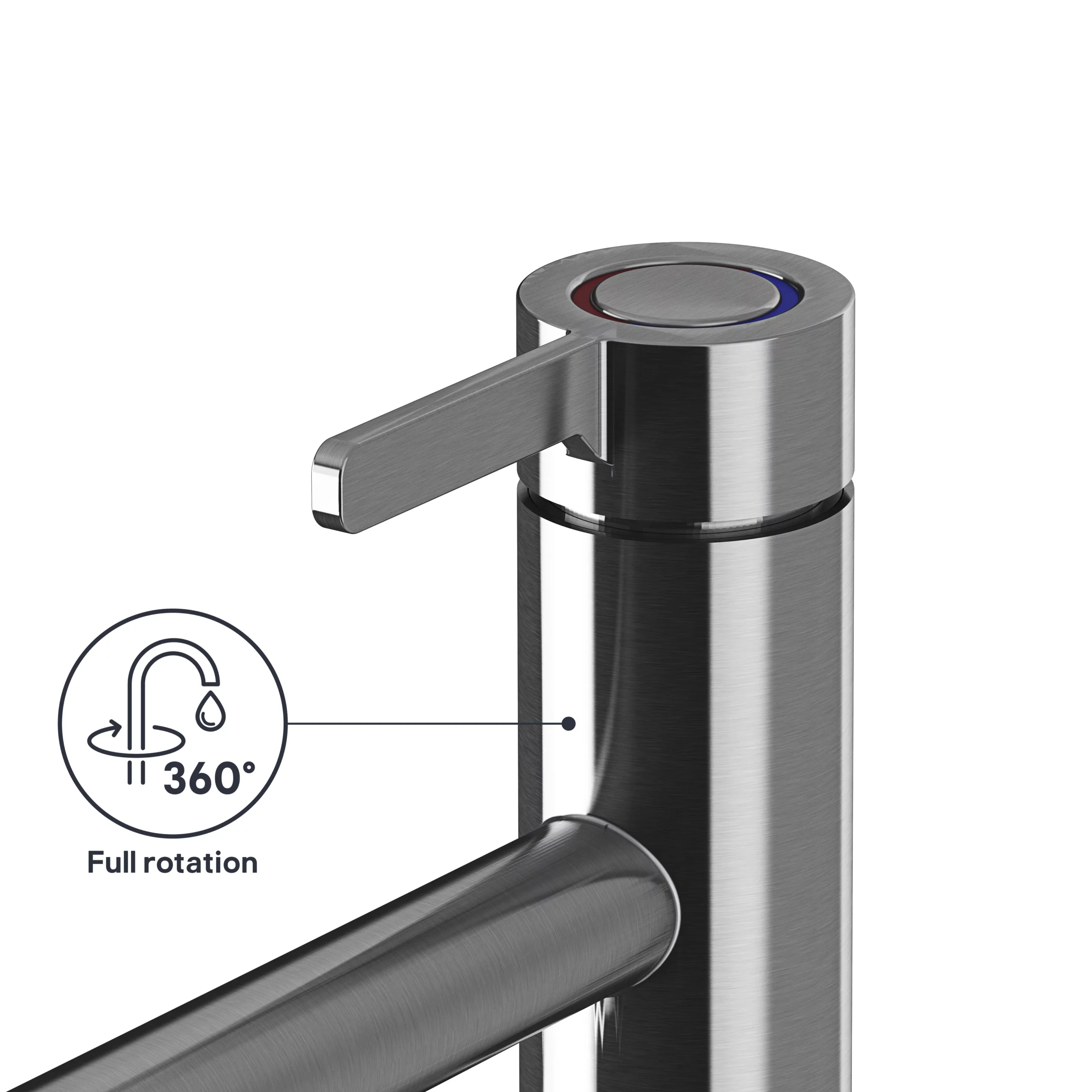 This Morita stainless steel effect top lever kitchen tap is perfect for the families who are eager for the combination of the great product performance and perfect design in look.