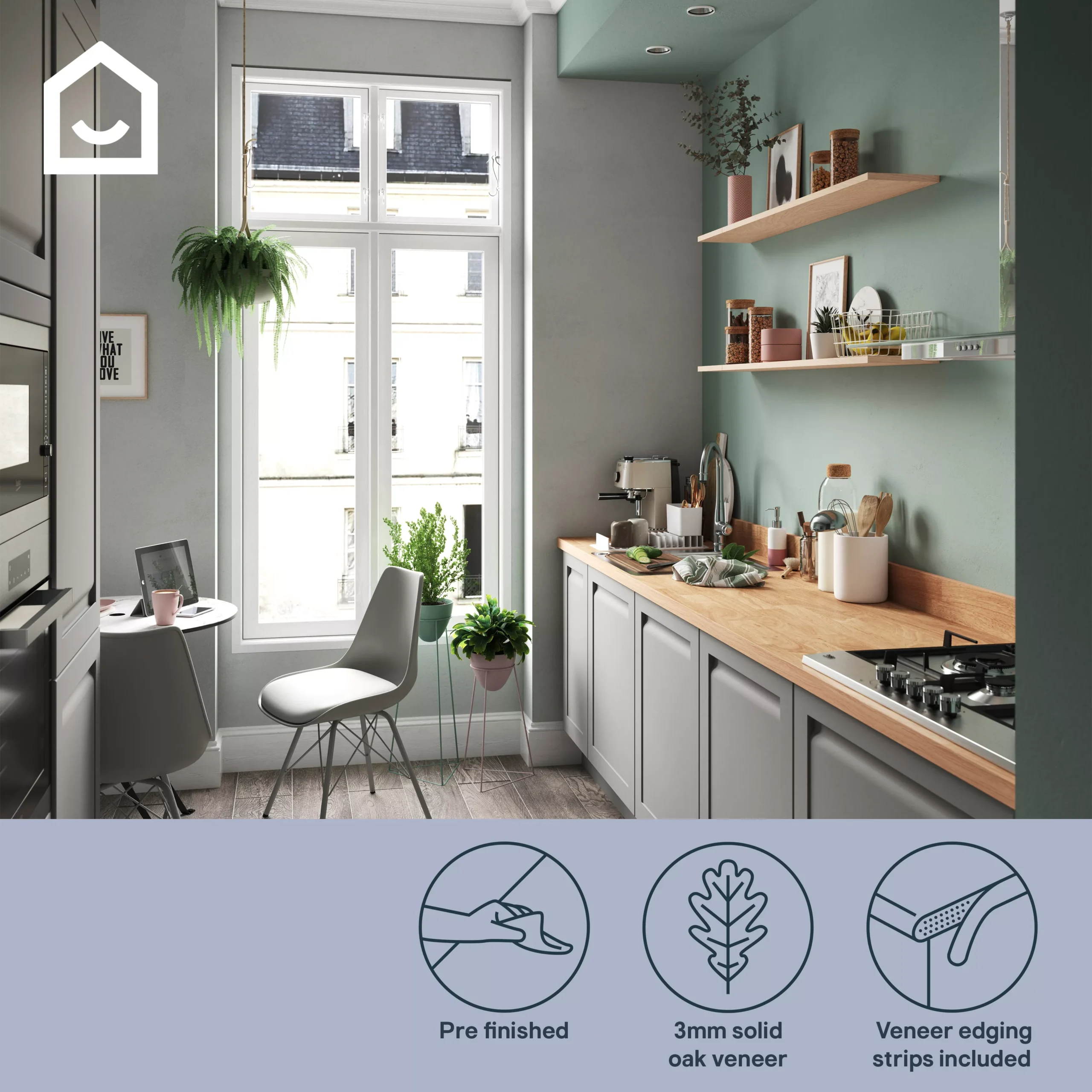 This GoodHome upstand creates a join between the worktop and the wall, helping to disguise any gaps and uneven walls. This upstand has been designed to match the worktops within the Orin range to create a neat and seamless finish and are a great alternative to tiling.