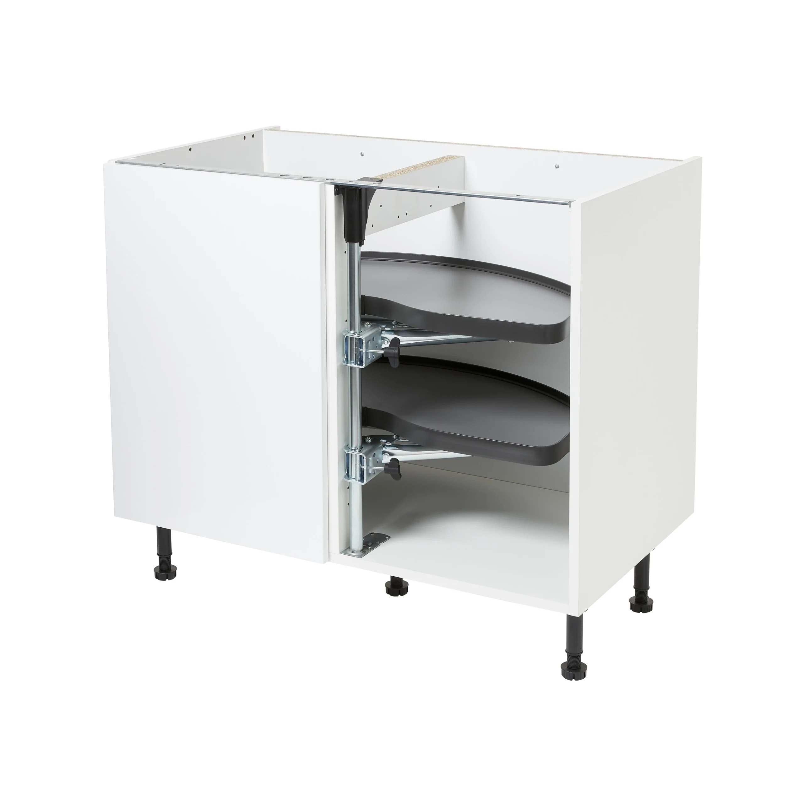 - Door opens & unit swings out to the left – This is for cabinets with the right hand side in the corner