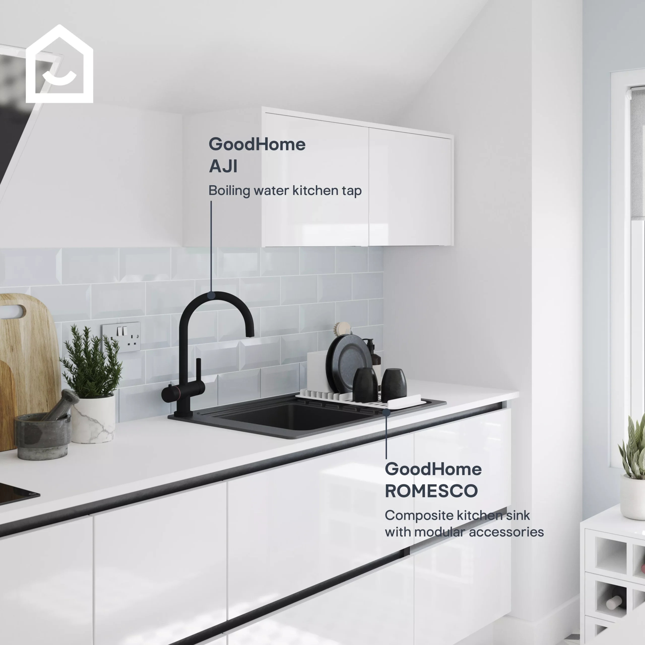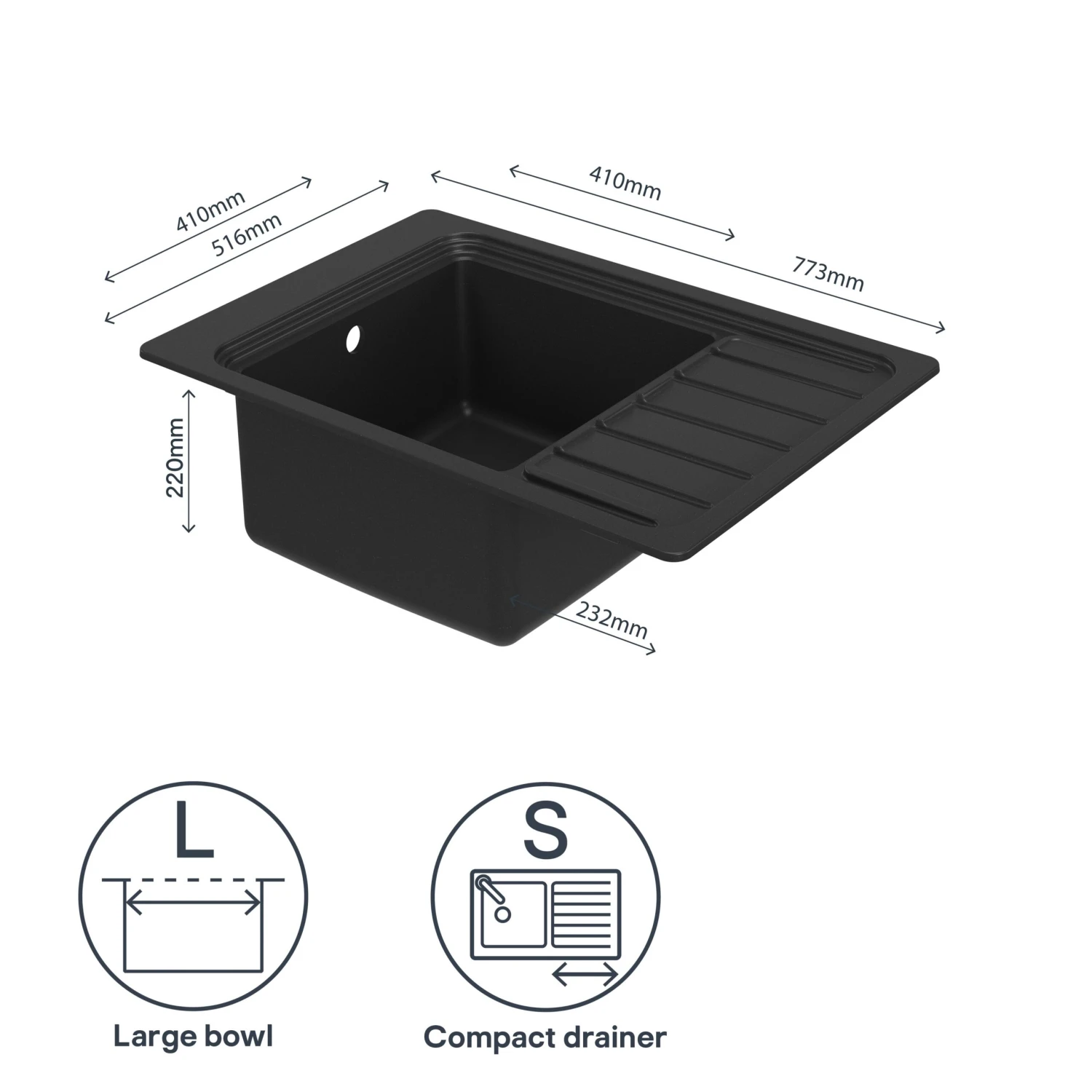 The Romesco’s compact sink design paired with innovative integrated sink accessories creates a clever and unique space saving sink system that maximises functionality, all within the footprint of a compact sink. The integrated sink accessories allow key functional tasks such as food preparation, washing and drying to take place within the sink bowl, saving you precious worktop space