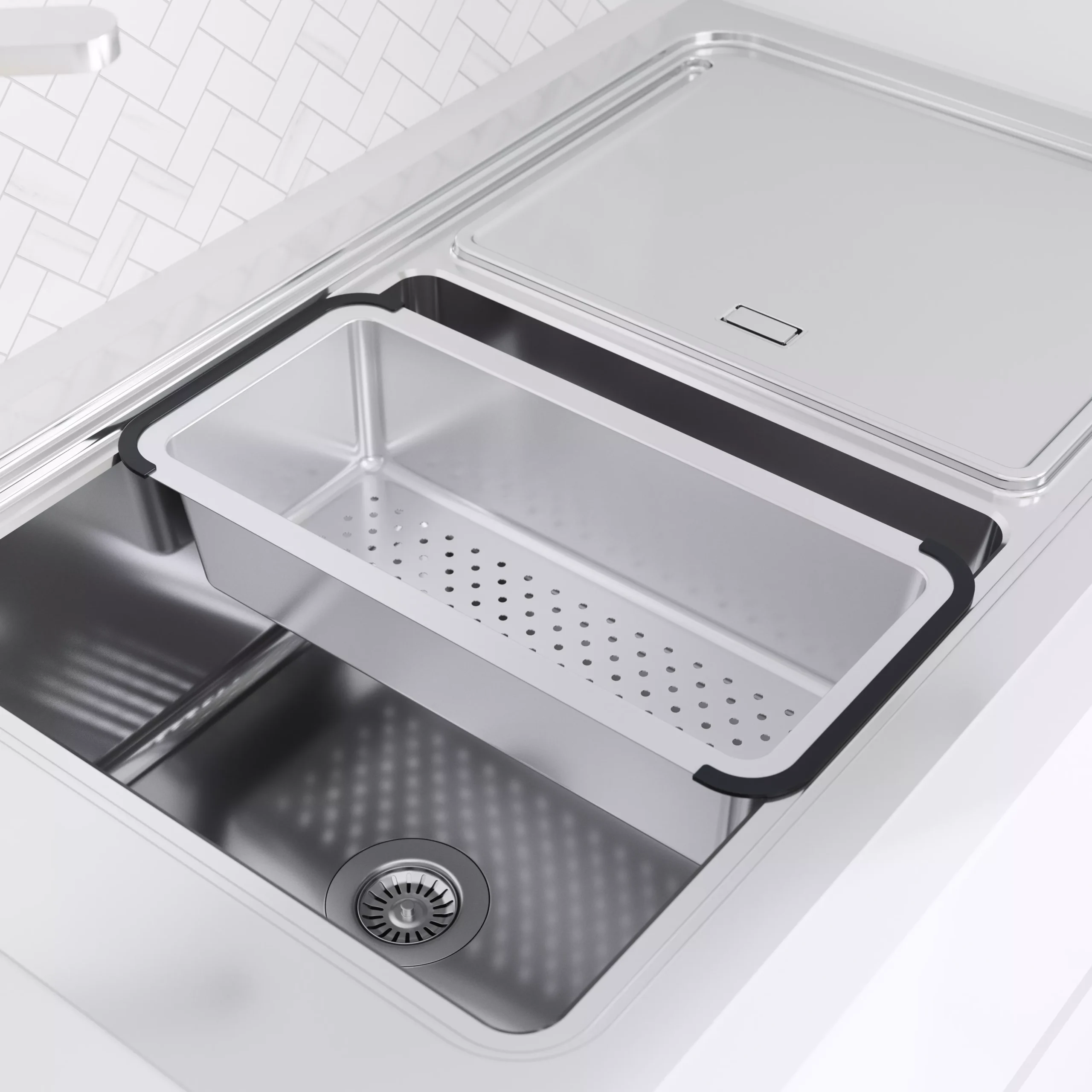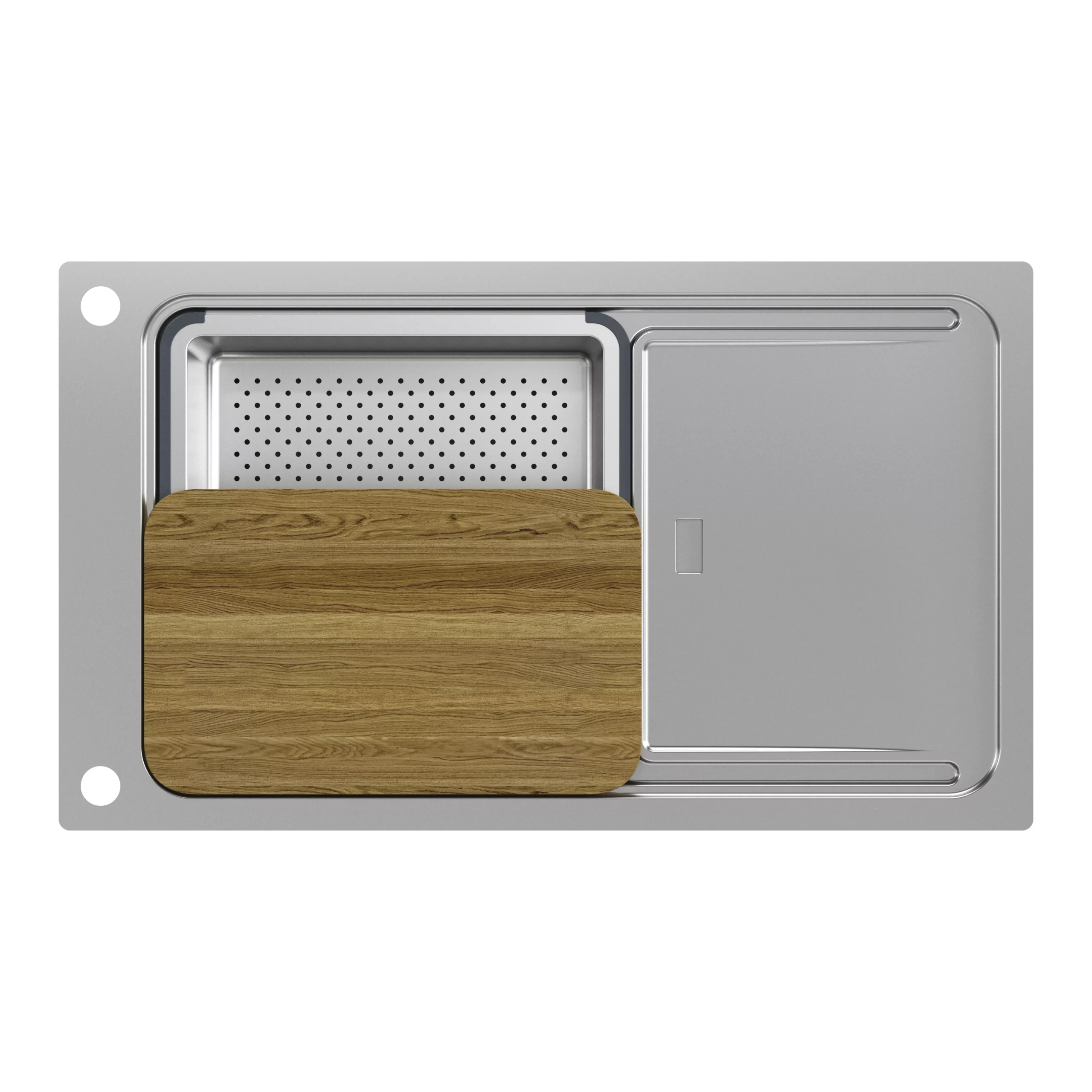 - Comes with Sink, sink fixing clips, sealing strip, instruction manual, oak chopping board, stainless steel colander, tap hole cover