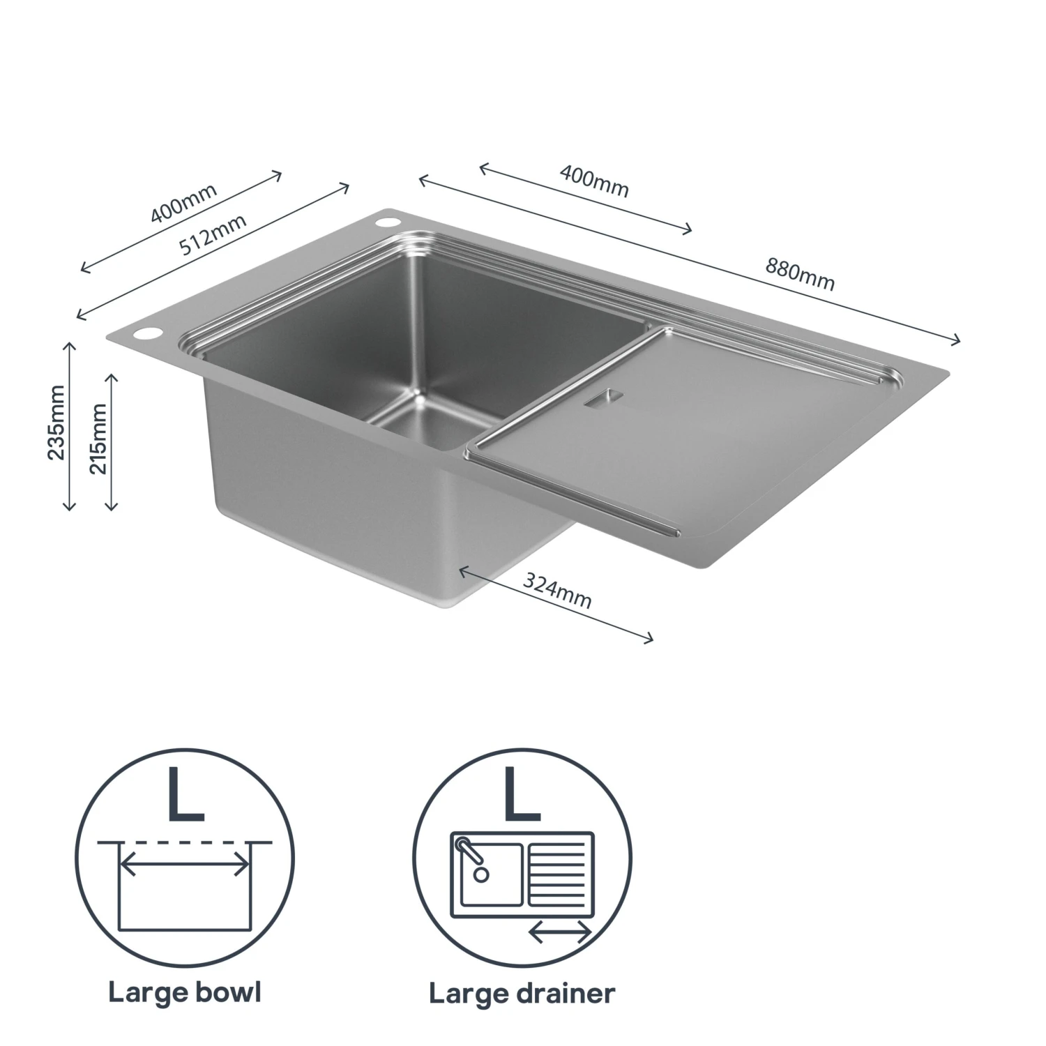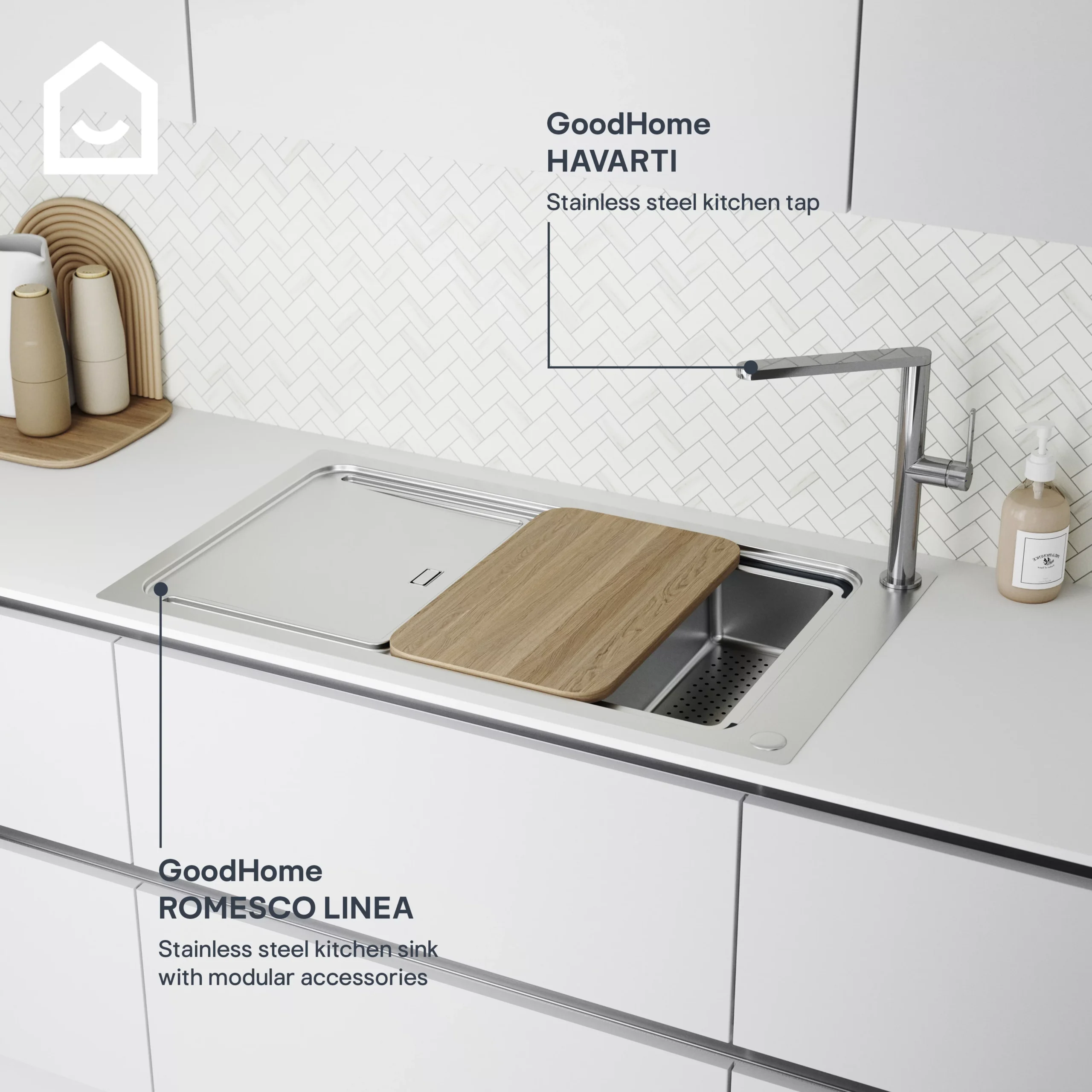 The Romesco sink from GoodHome maximises functionality and space with premium integrated accessories, making it ideal for smaller kitchens.