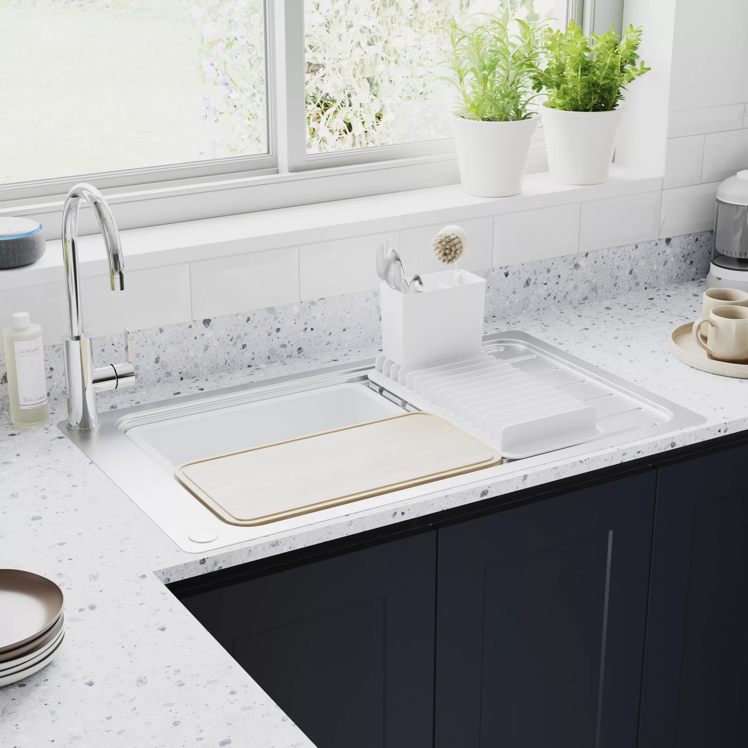 The Romesco sink from GoodHome maximises functionality and space with integrated modular accessories. This sink is a standard size, making it ideal to retrofit an existing sink, and has a larger drainer size for increased drainer capacity.