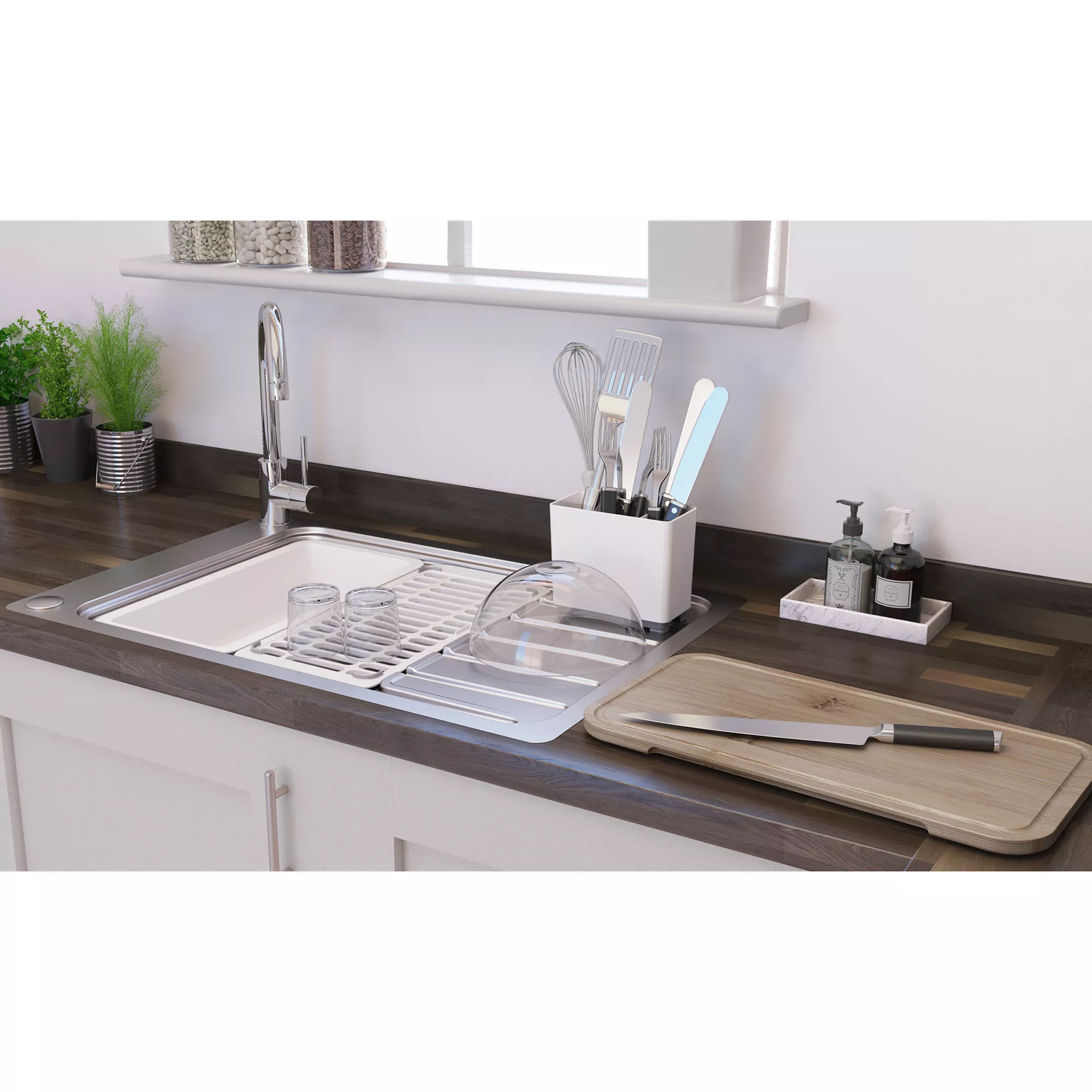 - Non-slip feet included on the chopping board, cutlery drainer and drying rack for stability